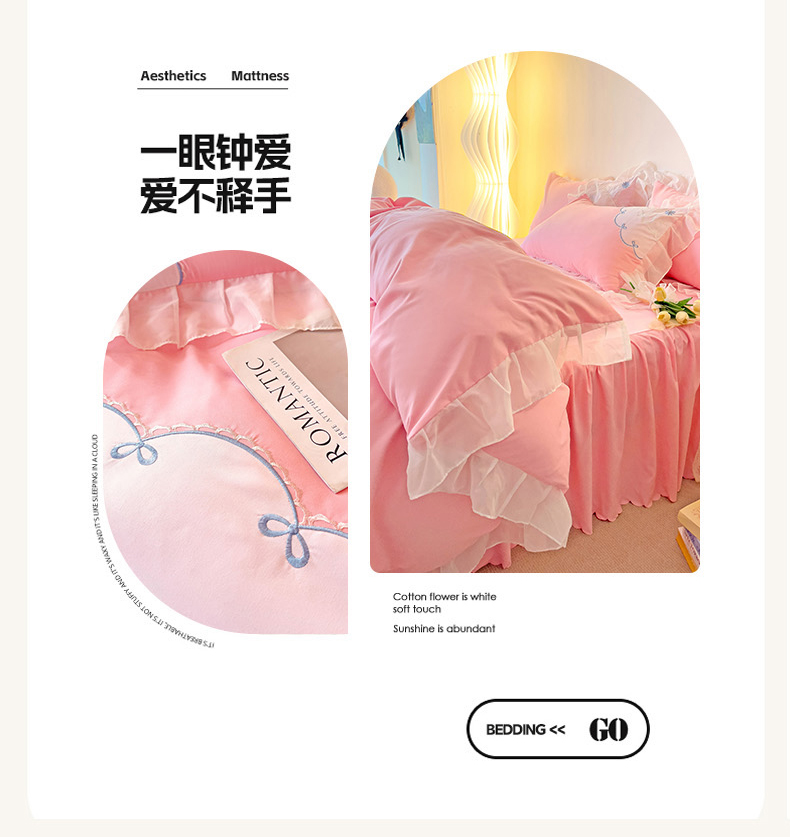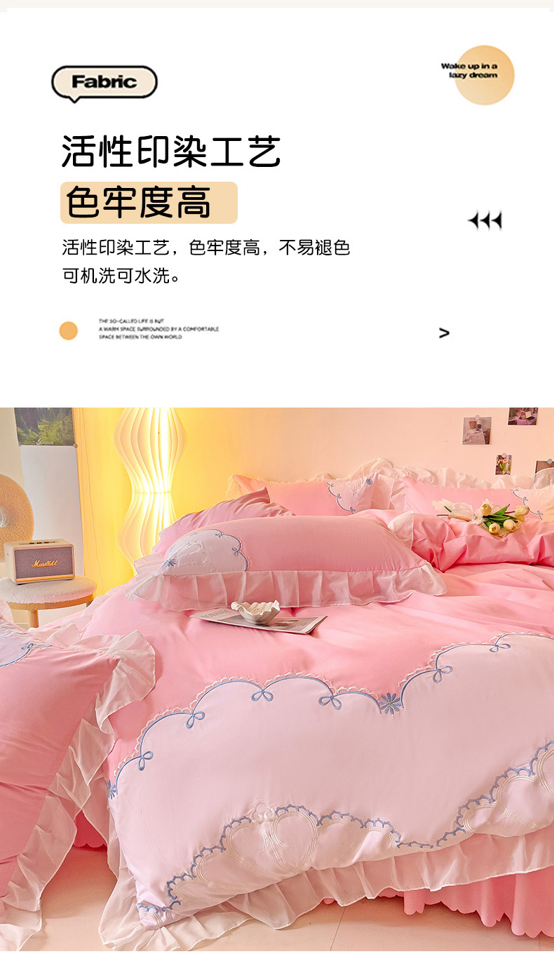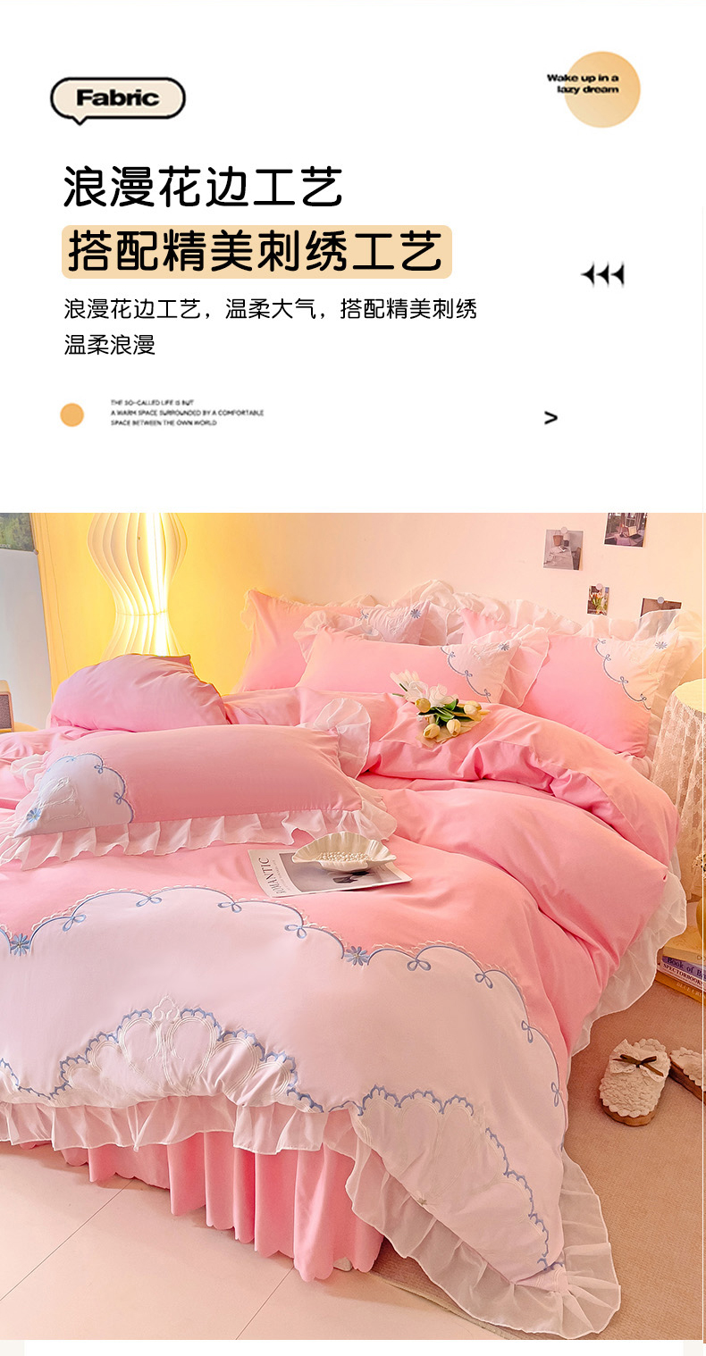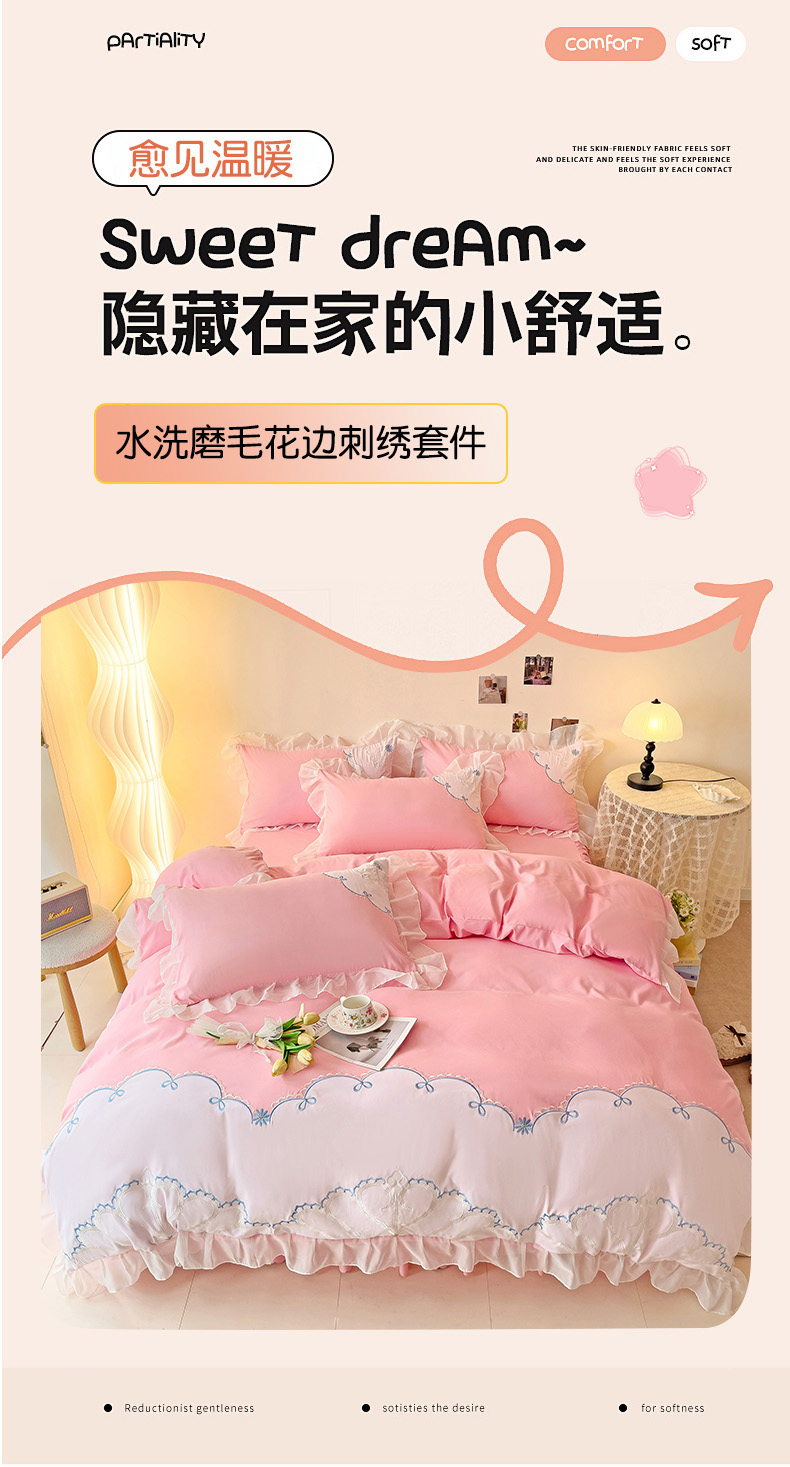 当前位置: 91家纺网 > 商品网购 > 床品套件 > 四件套 > 水洗棉四件套 > 慕语家纺 2025新款韩版高支高密水洗磨毛棉贴布绣四件套-克拉恋人 克拉恋人-浅玉粉