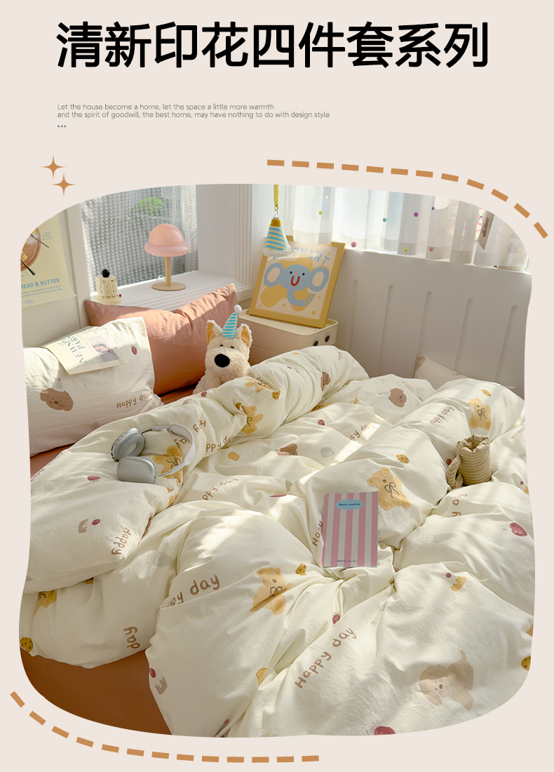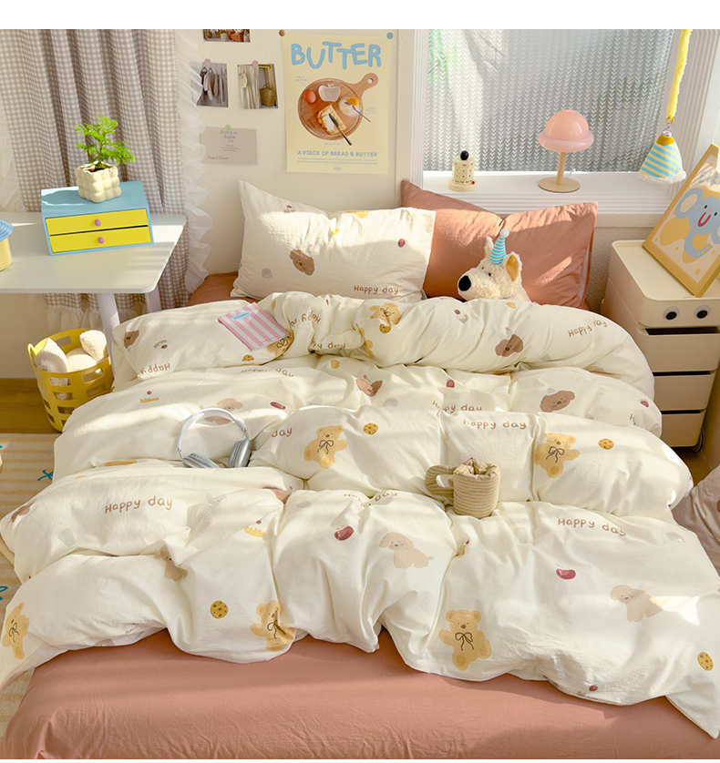 当前位置: 91家纺网 > 商品网购 > 床品套件 > 四件套 > 水洗棉四件套 > 颜选 2025新款水洗棉印花四件套【提供买家秀】 蝴蝶结熊