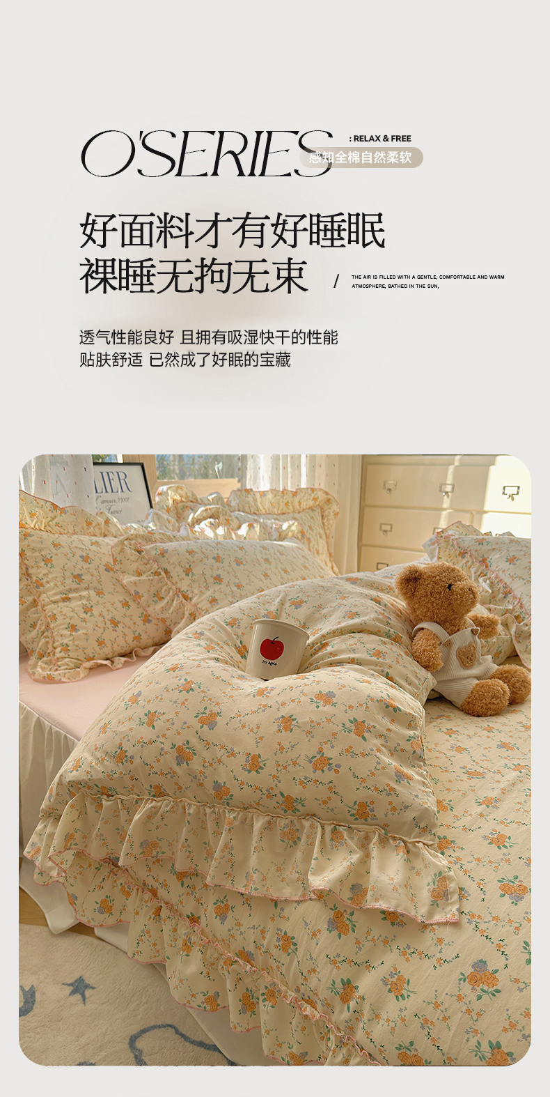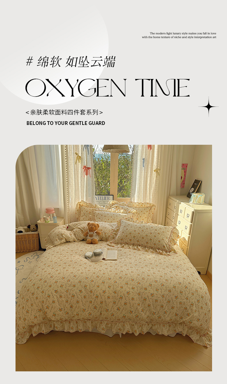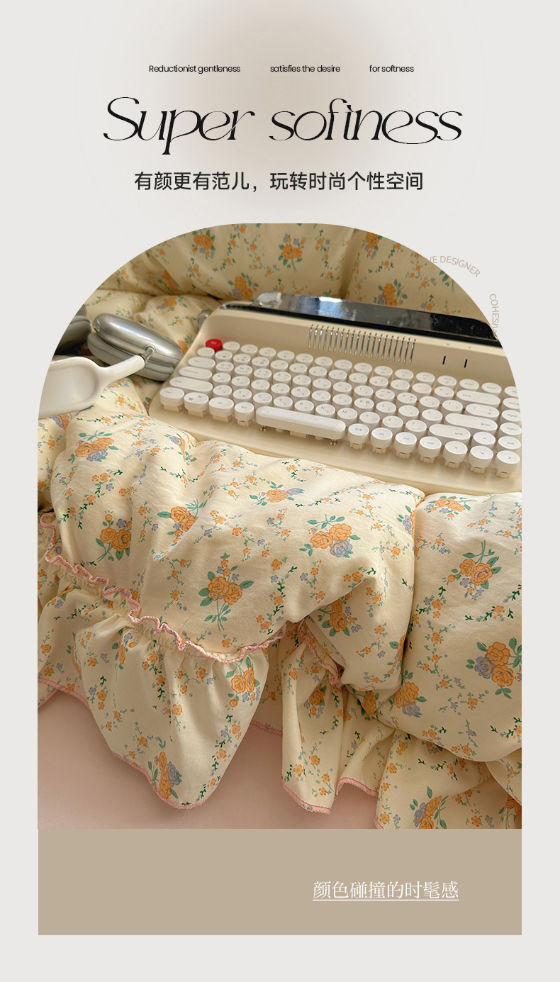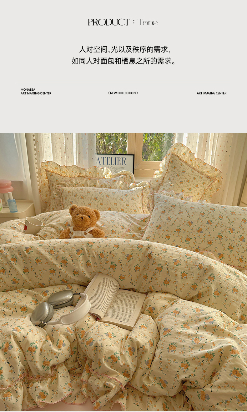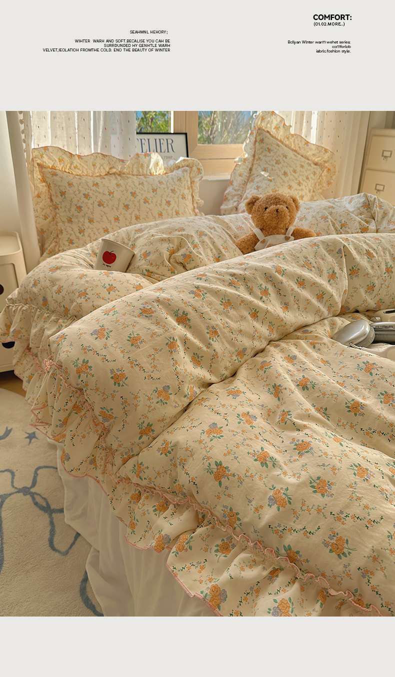 当前位置: 91家纺网 > 商品网购 > 床品套件 > 四件套 > 其它四件套 > 盼季家纺 2025新款公主风花边小清新水洗棉床上四件套床单被套床裙三件套-风格二 焦朵花