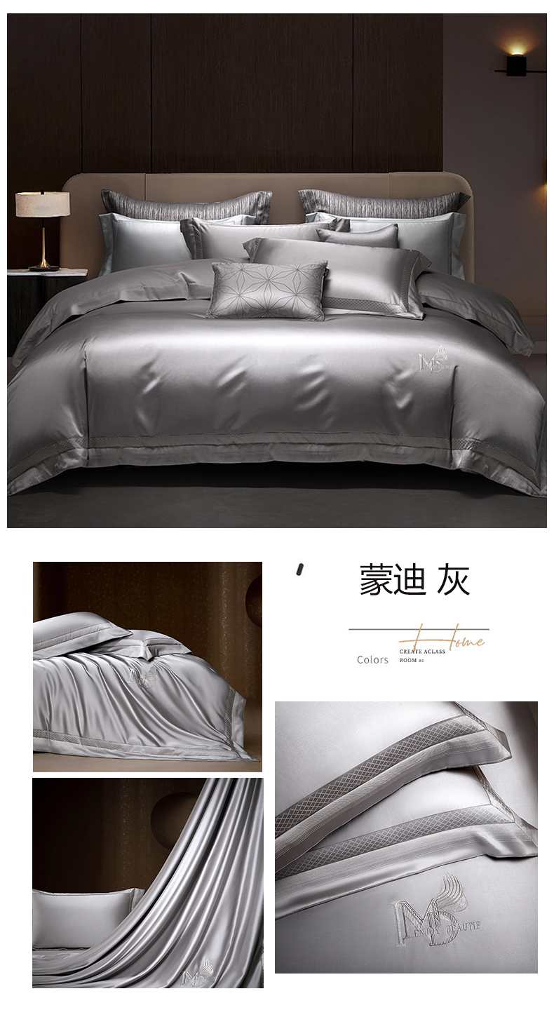 商品名称:诗黛尔 2025新款高精密长绒棉提花系列四件套-蒙迪 蒙迪-灰