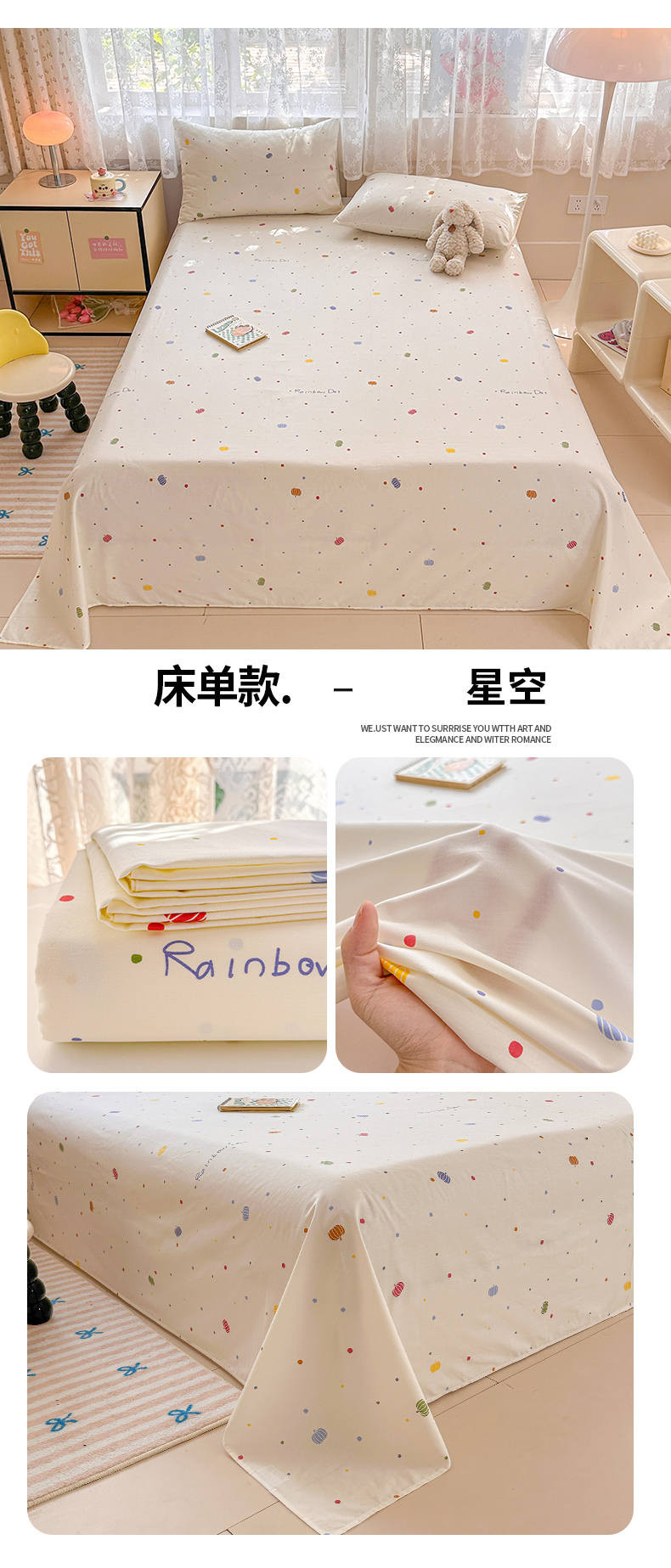 商品名称:晨希2025新款13070全棉印花单品床单枕套 星空