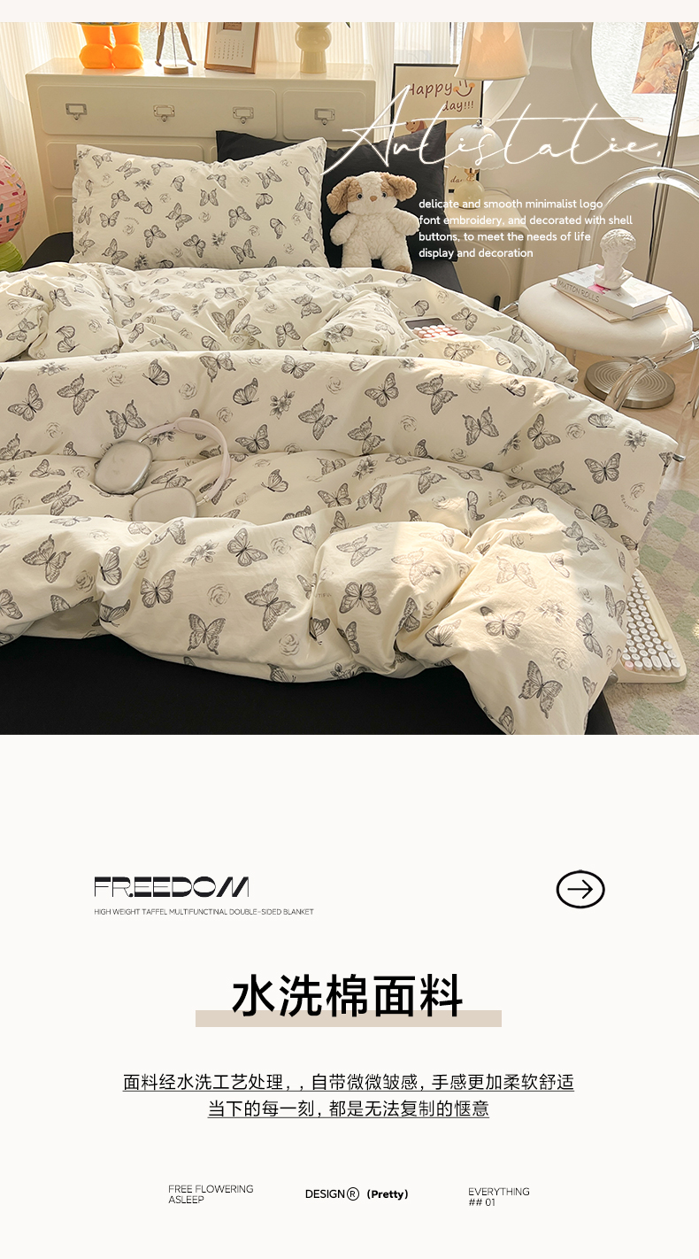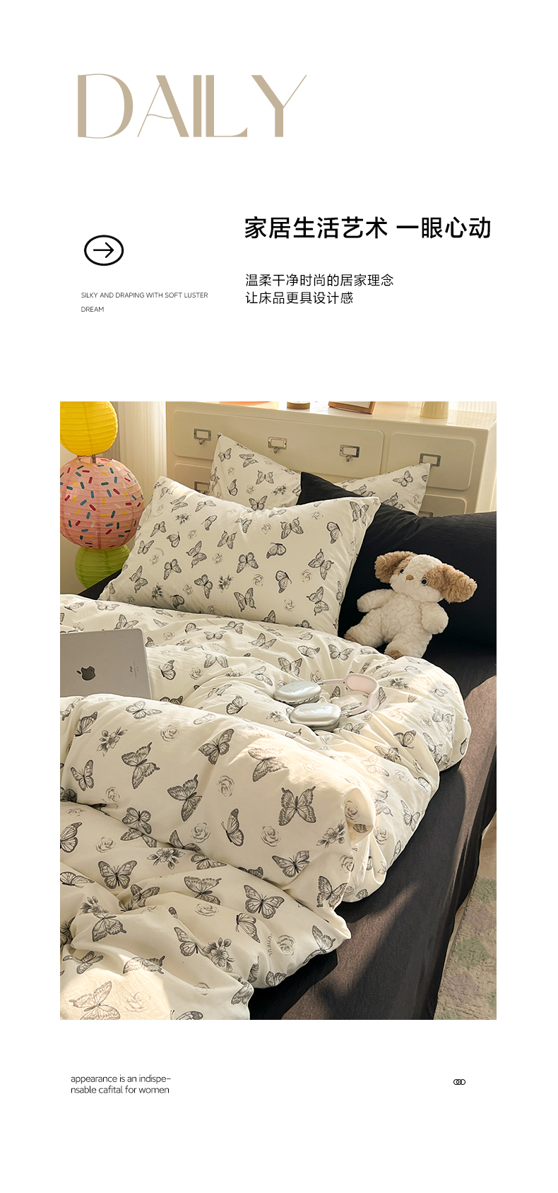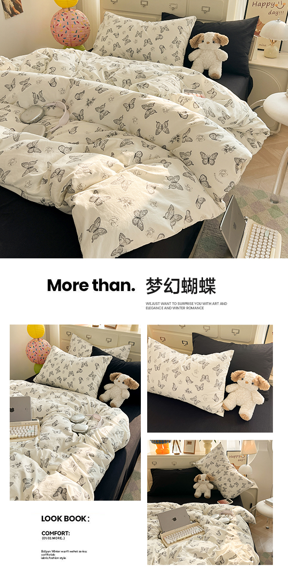 当前位置: 91家纺网 > 商品网购 > 床品套件 > 四件套 > 水洗棉四件套 > 韩巢家纺 2025新款超柔水洗棉印花被套床单床上用品四件套 梦幻蝴蝶