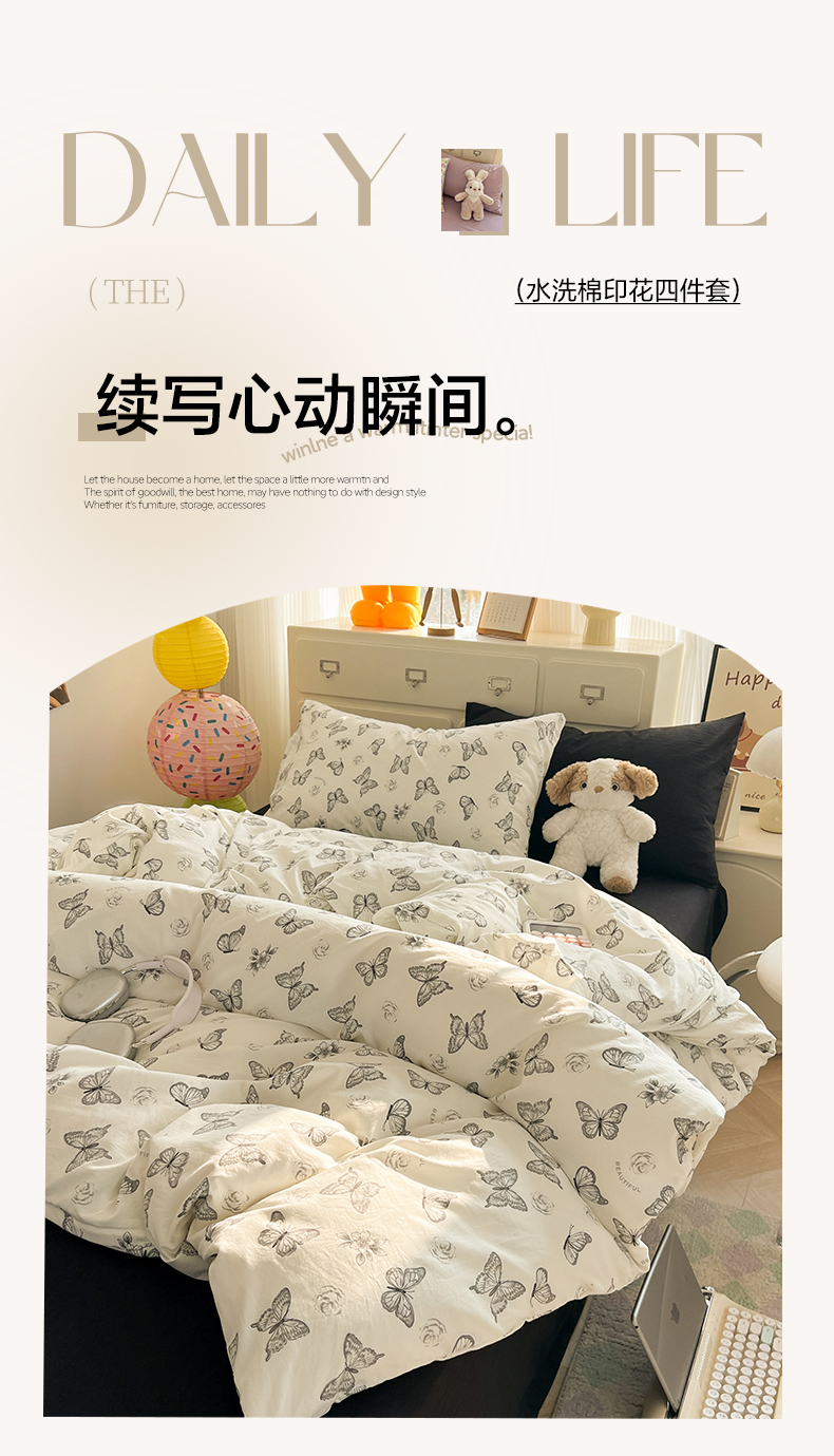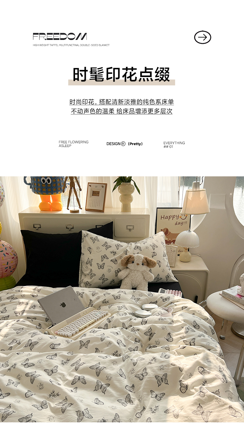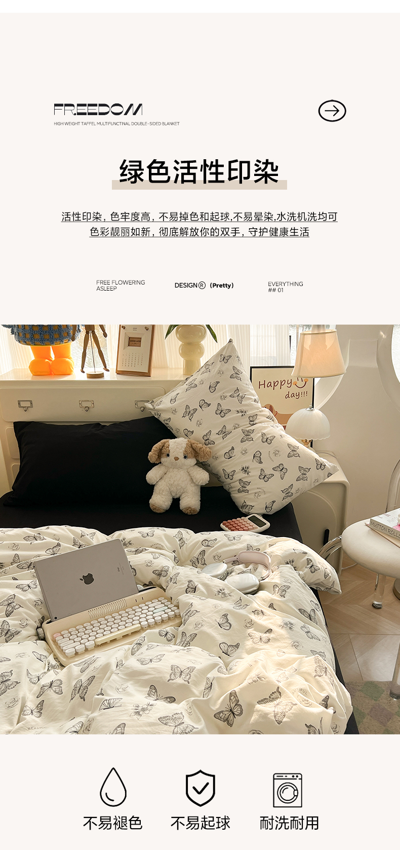 当前位置: 91家纺网 > 商品网购 > 床品套件 > 四件套 > 水洗棉四件套 > 韩巢家纺 2025新款超柔水洗棉印花被套床单床上用品四件套 梦幻蝴蝶