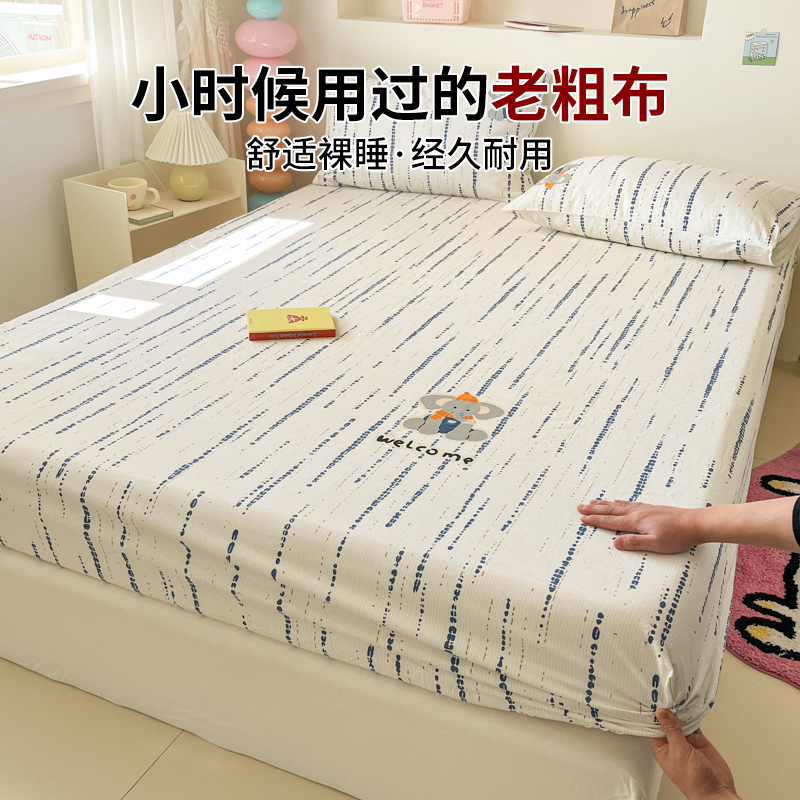 买家秀爆款不断货A类母婴级床笠罩全棉床单防滑全包床垫保护罩全棉老粗布床单100纯棉老粗布床笠罩三件套 展示图3