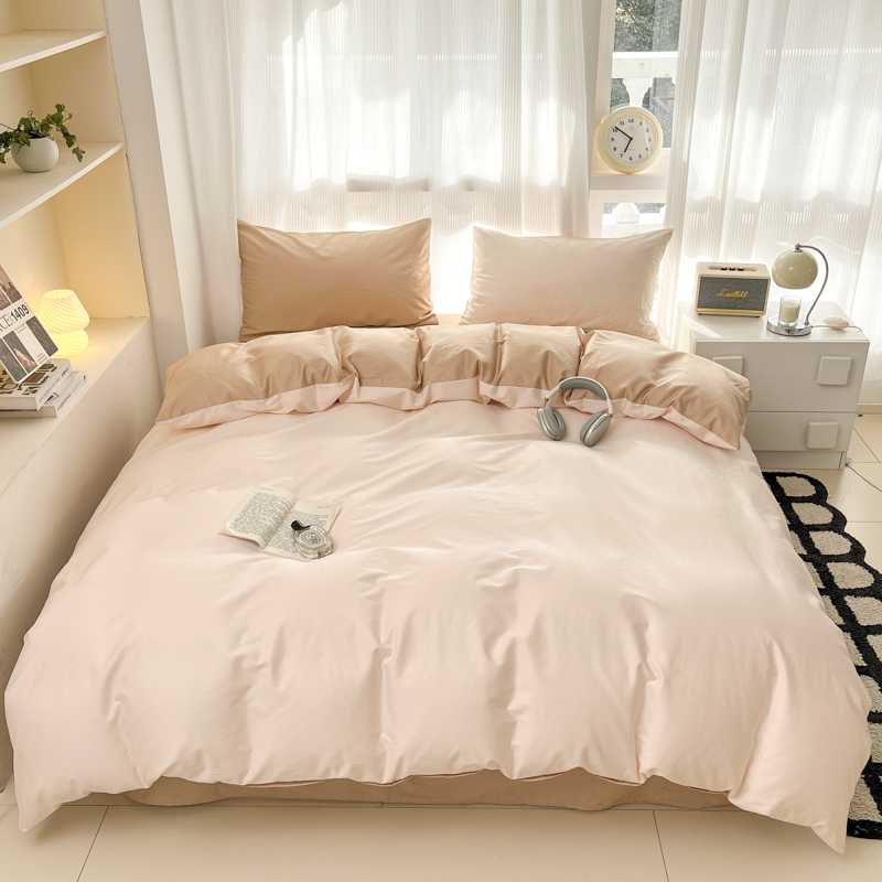 耀悦家纺 2025新款A类纯棉60支拼色四件套 灵动白桃-复古咖