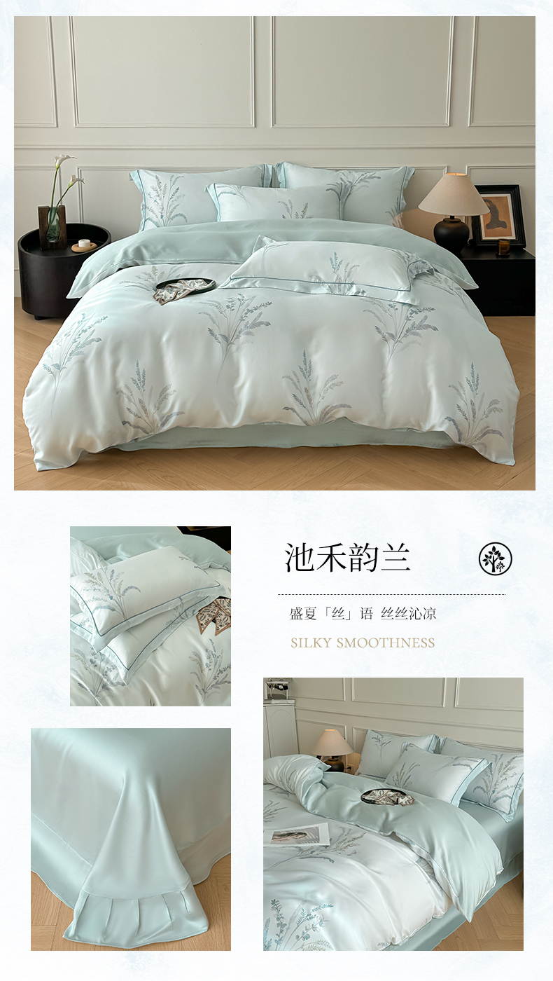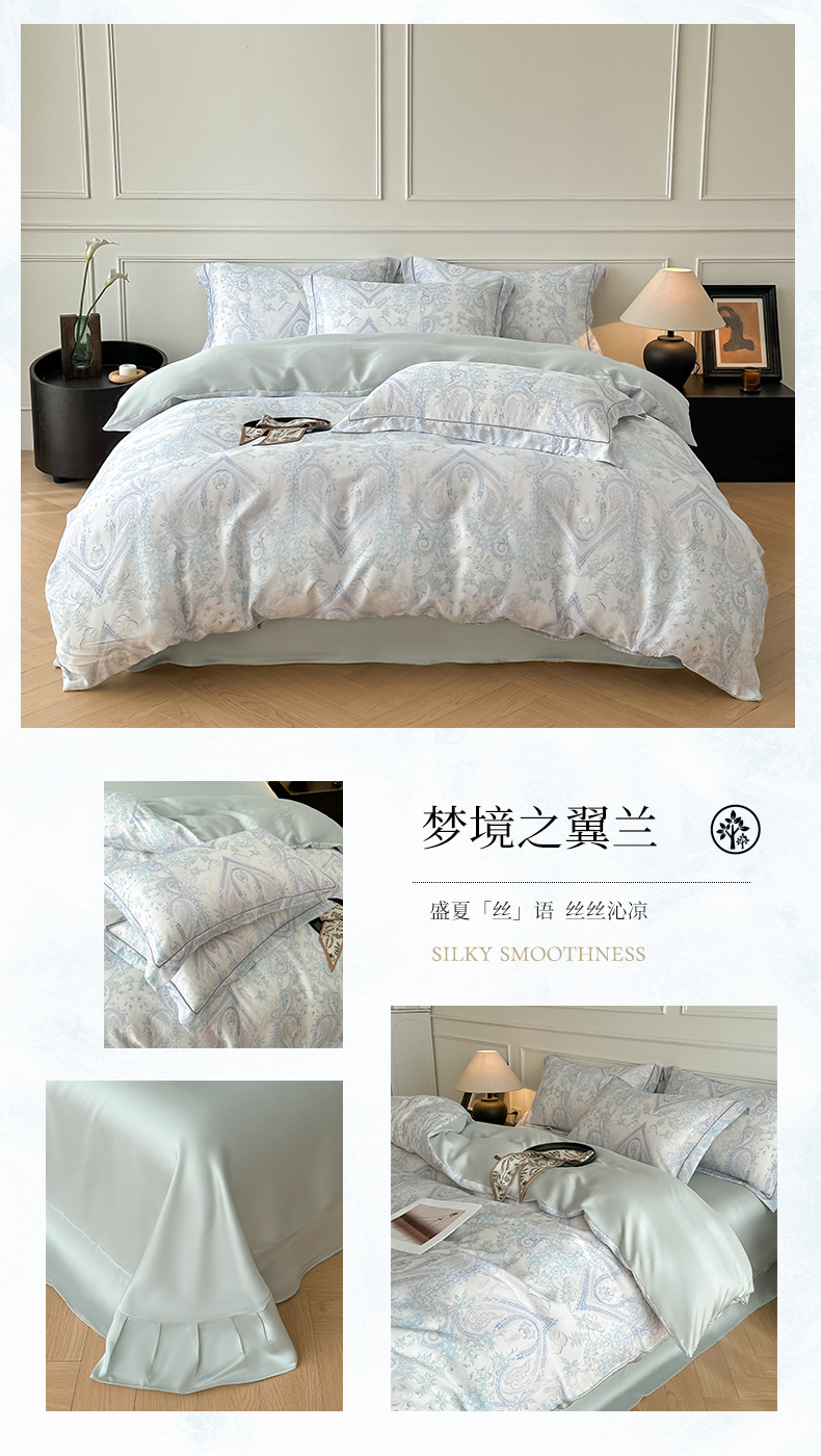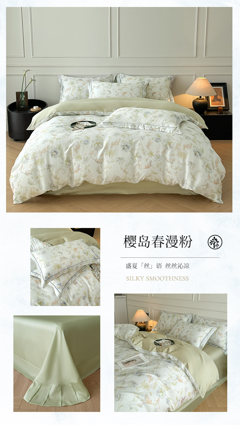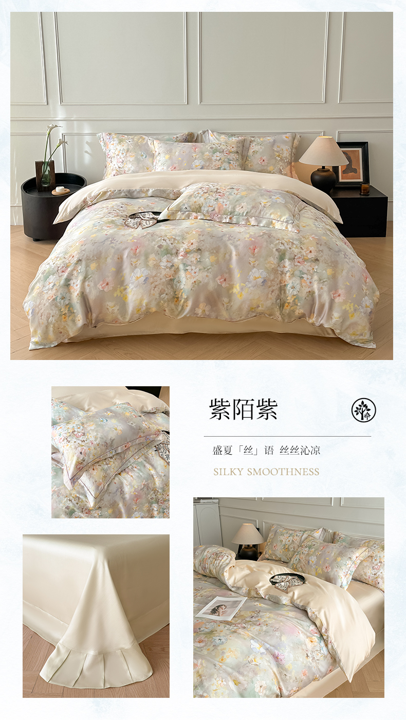 (总)启航家居 2025春夏新款莱赛尔天丝数码印花四件套,半纸叶灰,池禾韵兰,花园派对沙色,梦境之翼兰,梦境之翼绿,小雨录粉,烟花间粉,烟花间绿,樱岛春漫粉,云栖畔灰兰,栀花语粉,紫陌兰,紫陌紫