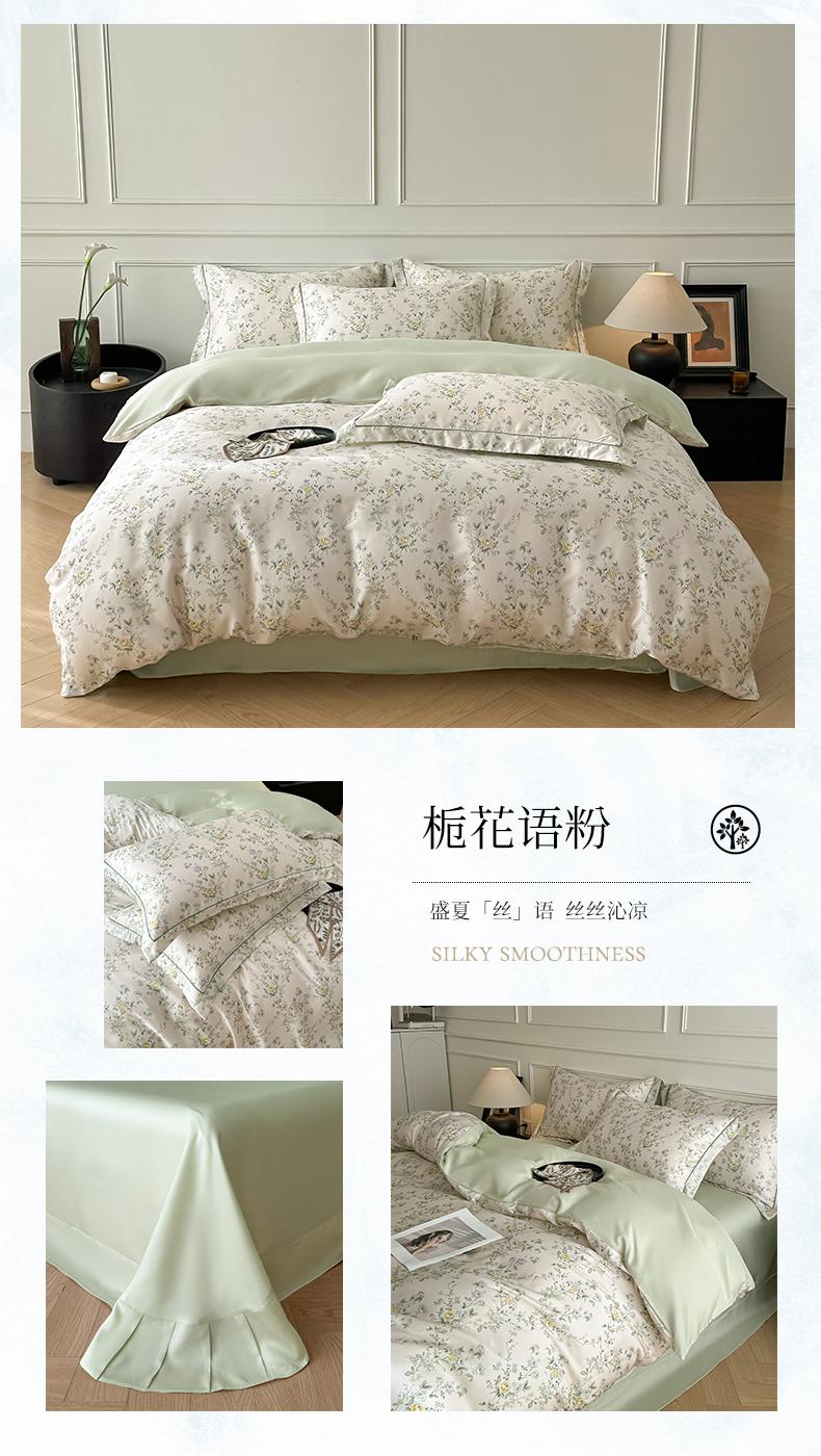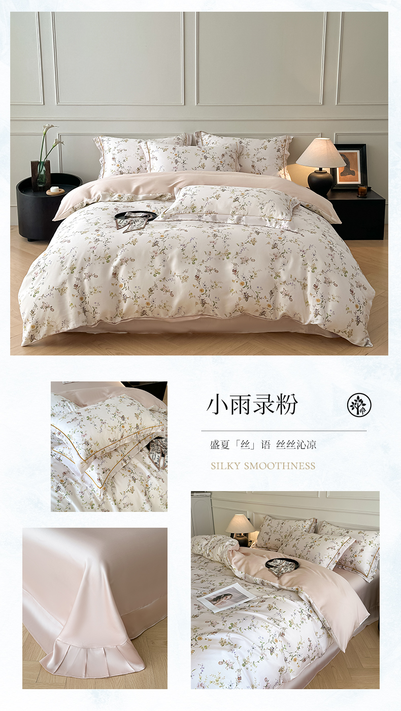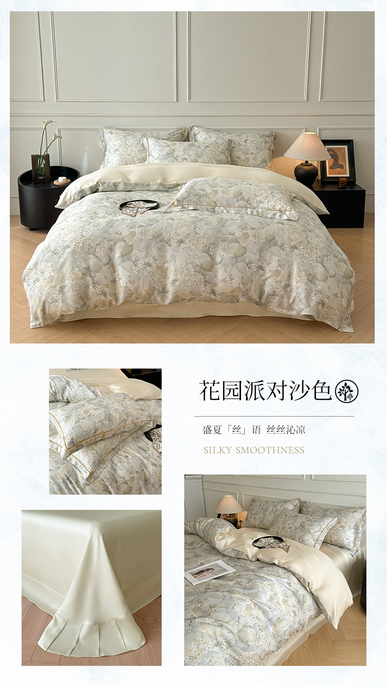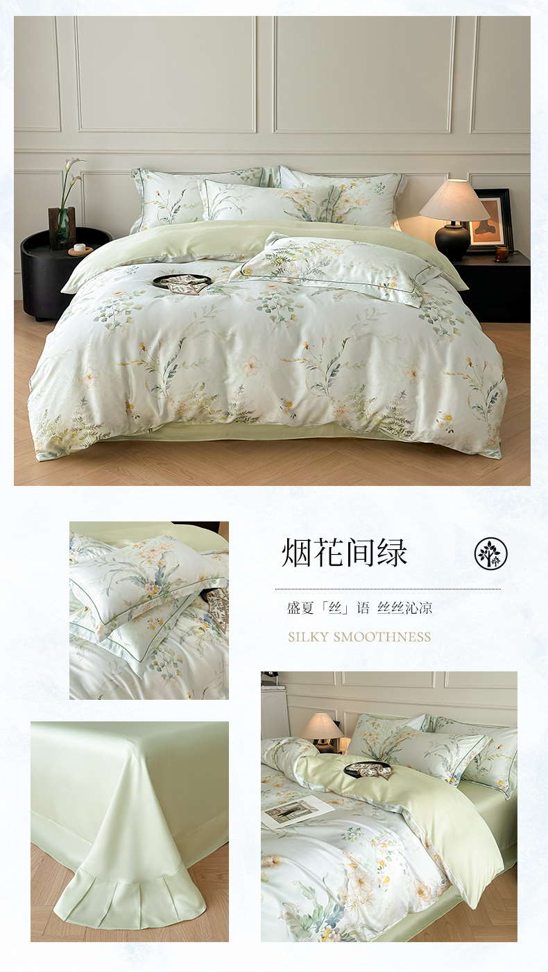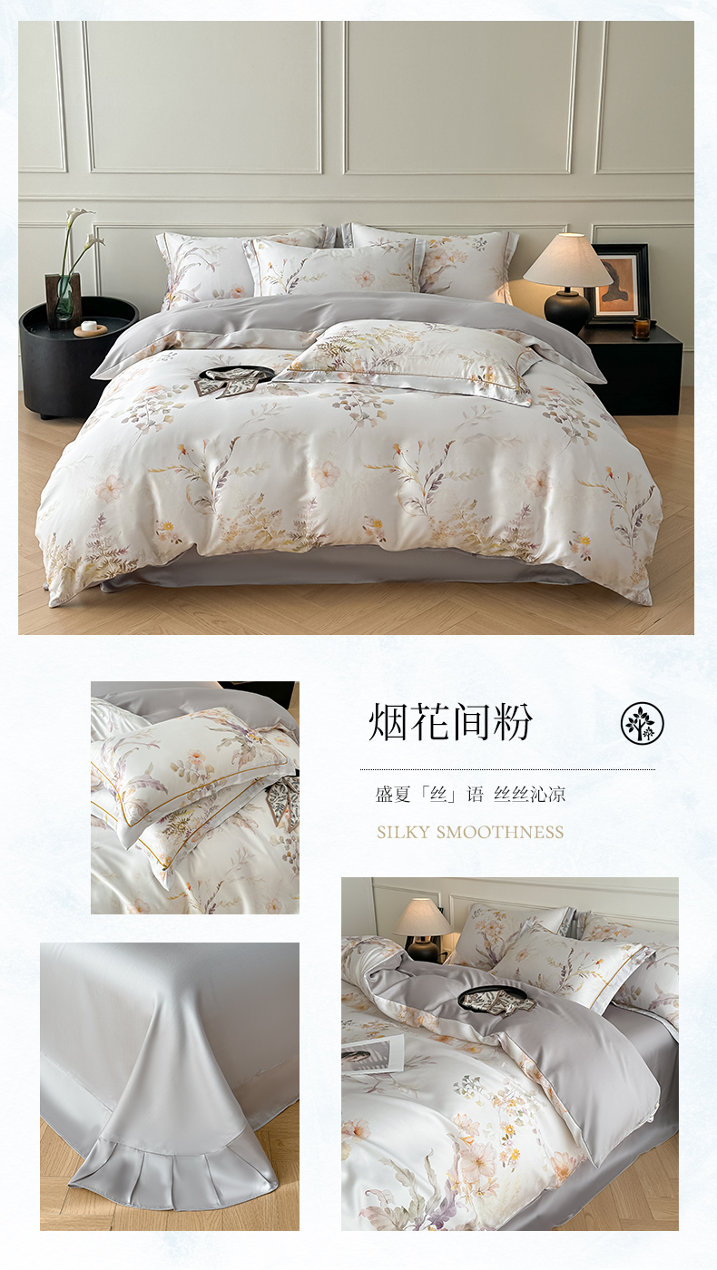 (总)启航家居 2025春夏新款莱赛尔天丝数码印花四件套,半纸叶灰,池禾韵兰,花园派对沙色,梦境之翼兰,梦境之翼绿,小雨录粉,烟花间粉,烟花间绿,樱岛春漫粉,云栖畔灰兰,栀花语粉,紫陌兰,紫陌紫