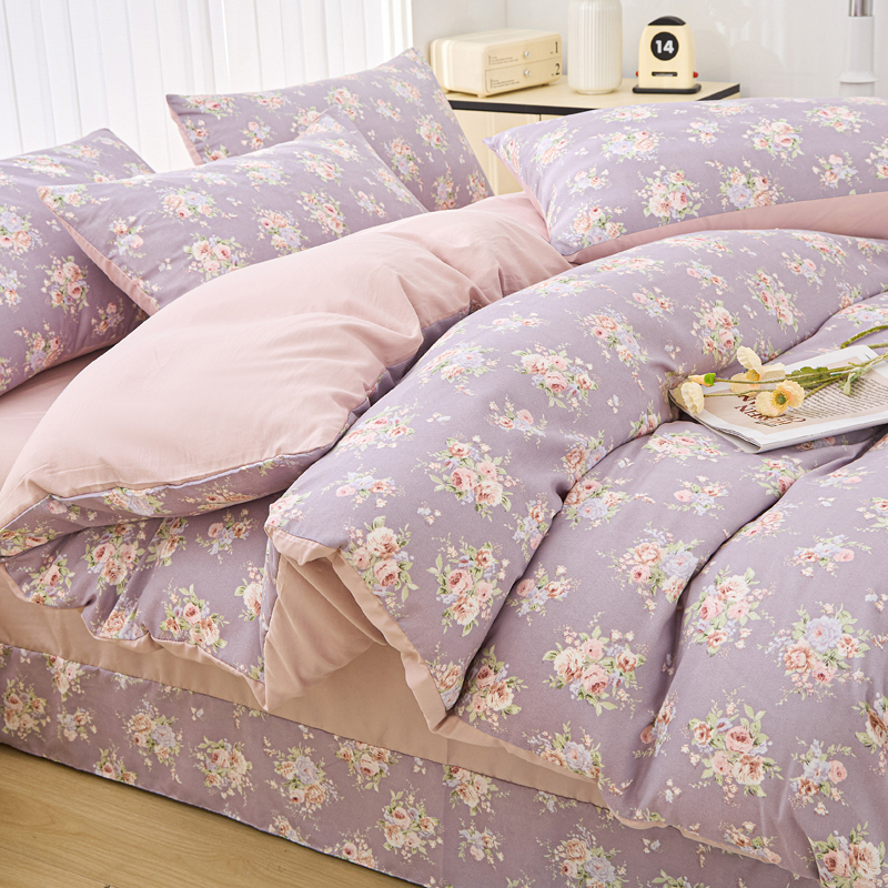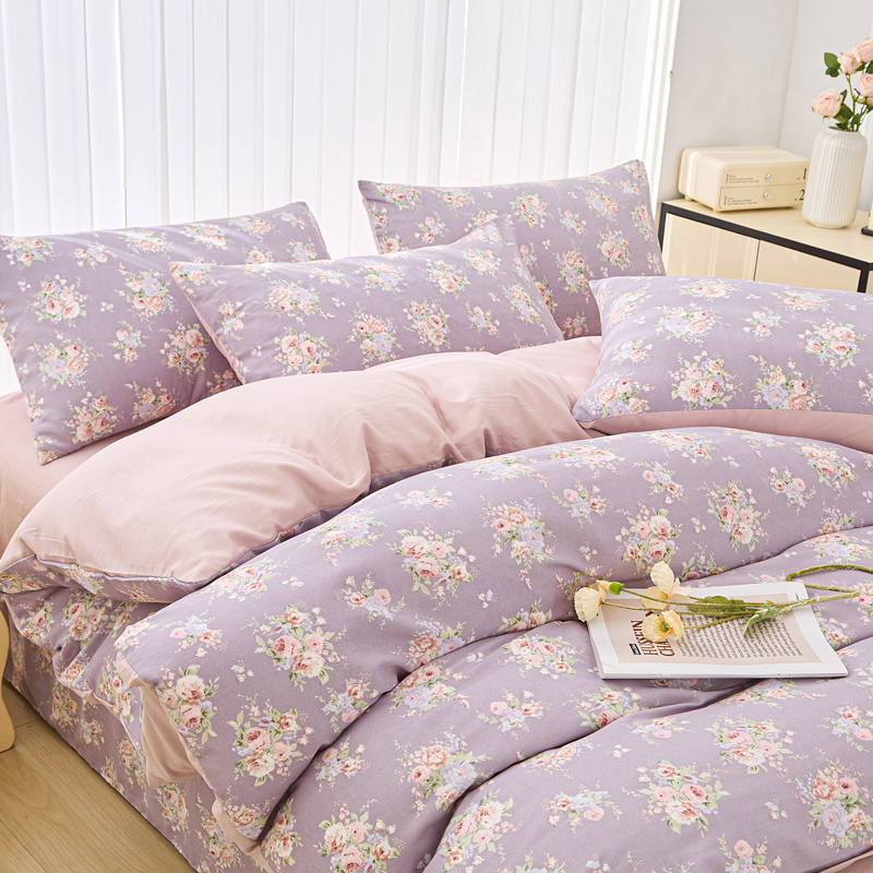 商品名称:雅慕家居 2025新款针织棉双层纱四件套 凡尔赛紫