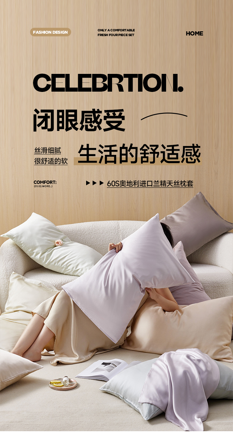 简纯主义 2025新款60s纯色天丝单品枕套系列 典雅玉粉
