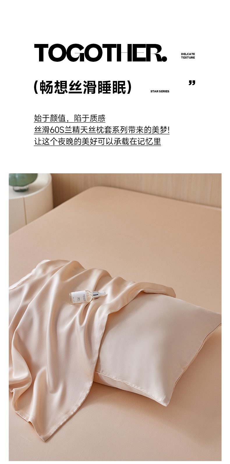商品名称:简纯主义 2025新款60s纯色天丝单品枕套系列 典雅玉粉