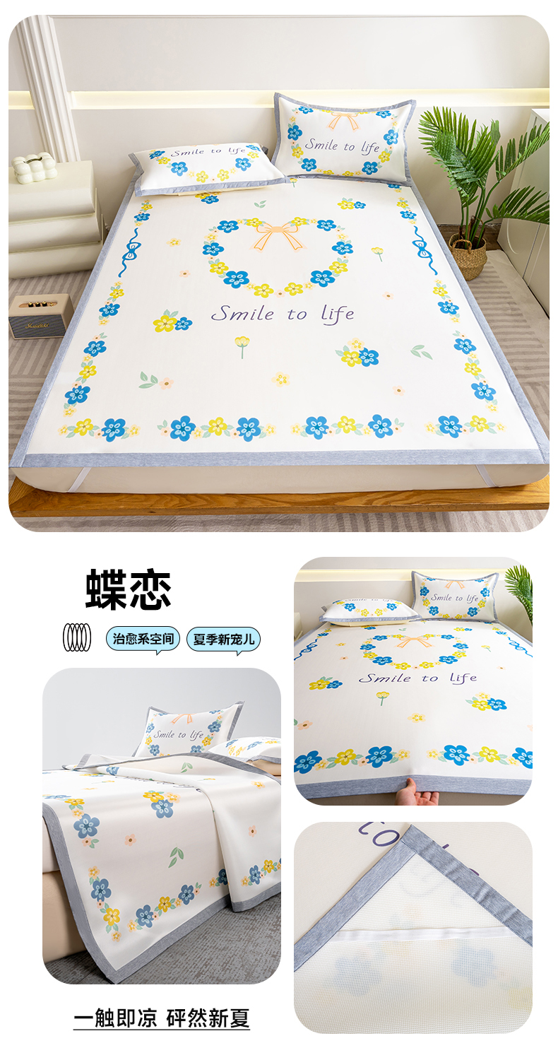 商品名称:邵依家纺 2025新款数码印花烫光冰丝席凉席子藤席场景二 蝶恋