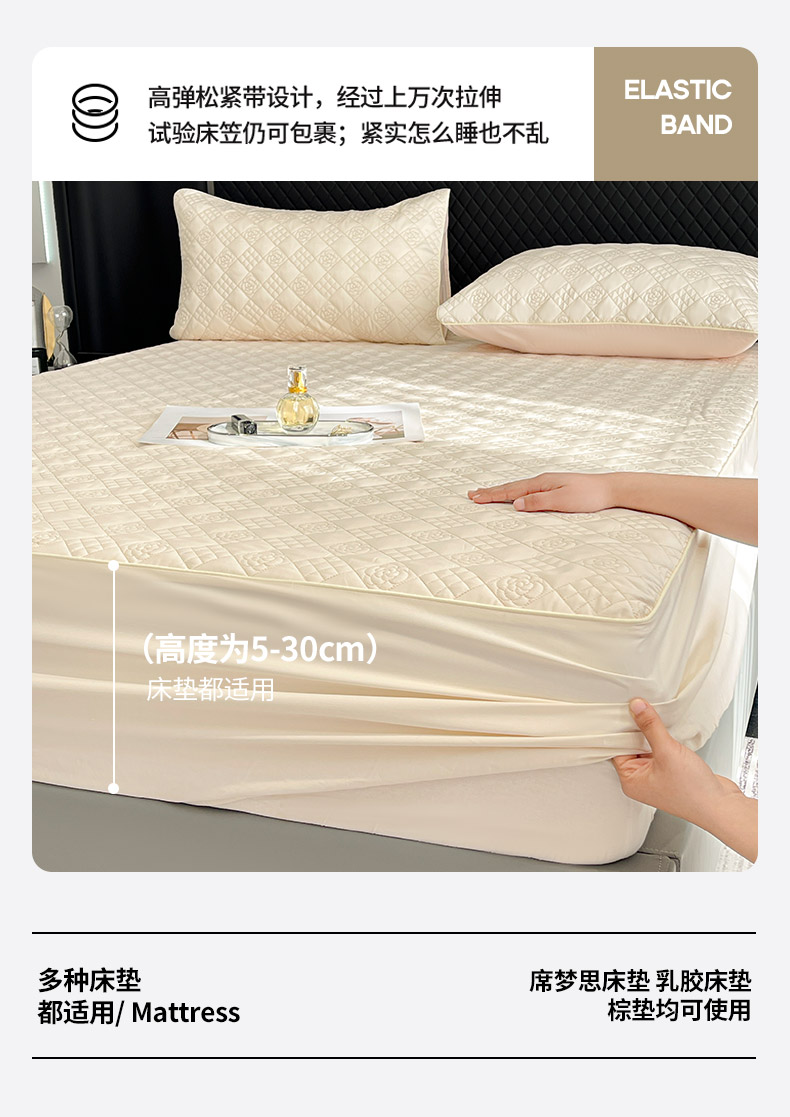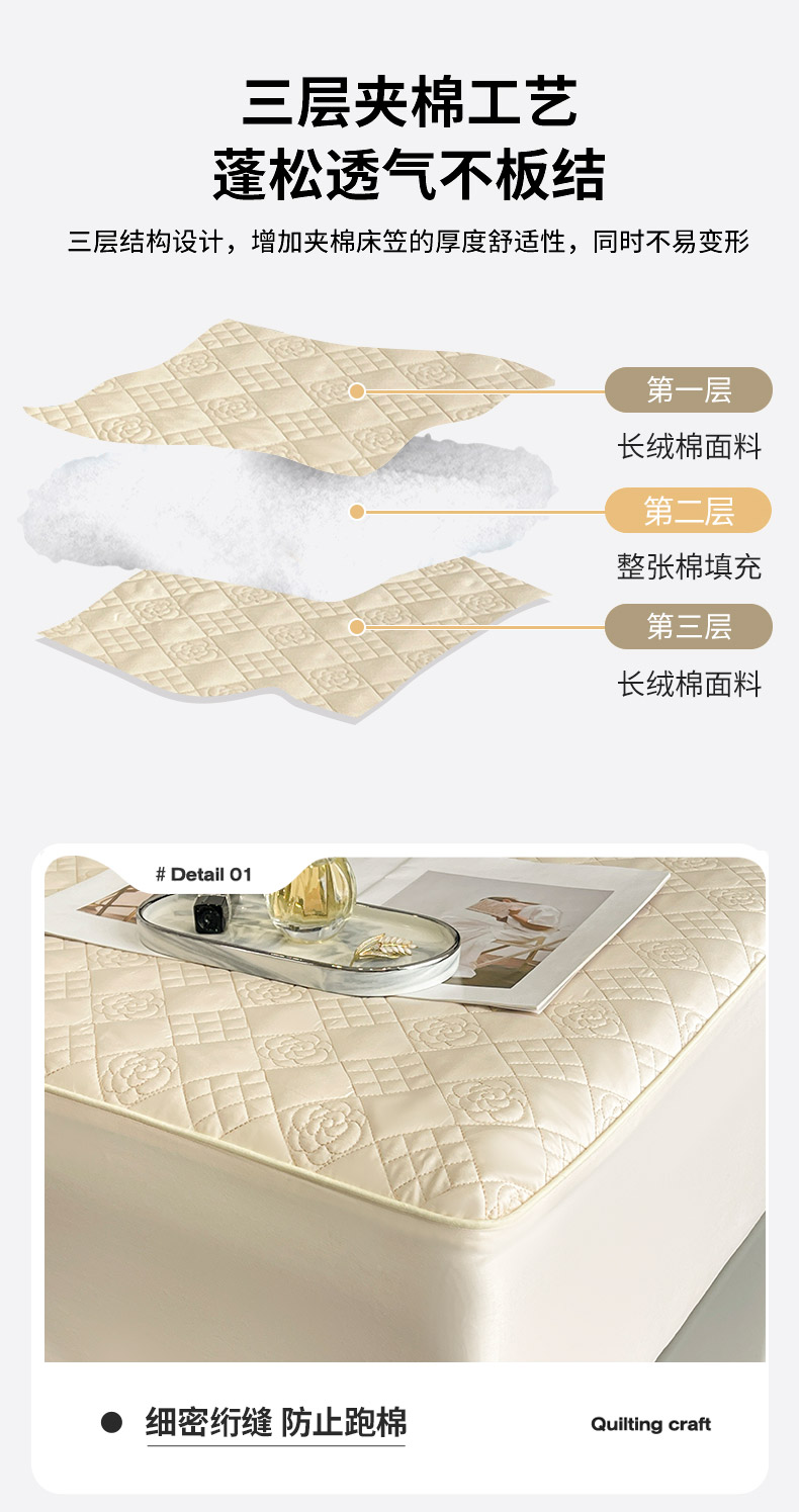 (总)2025A类母婴级长绒棉夹棉床笠三件套纯棉全棉加厚席梦思床罩床套四季款保护罩,茶绿,黛紫,慕蓝,奶玉,颜粉