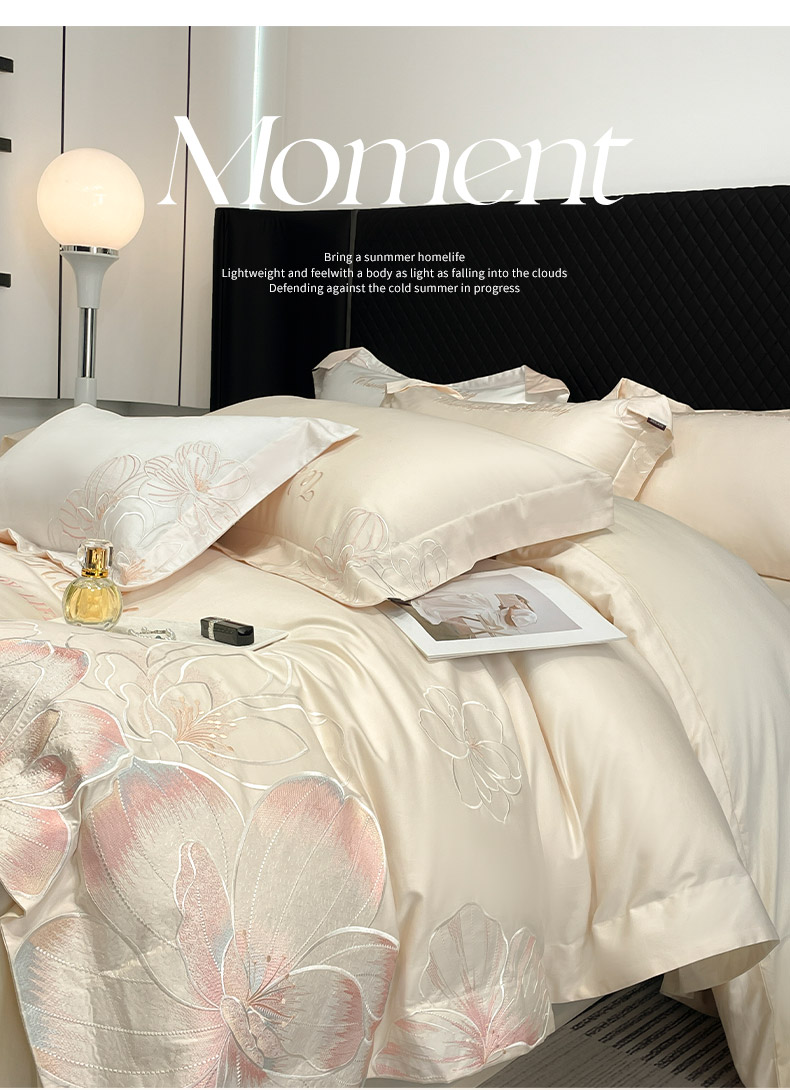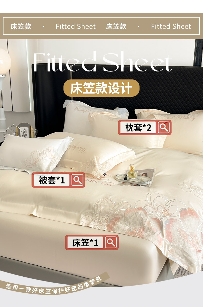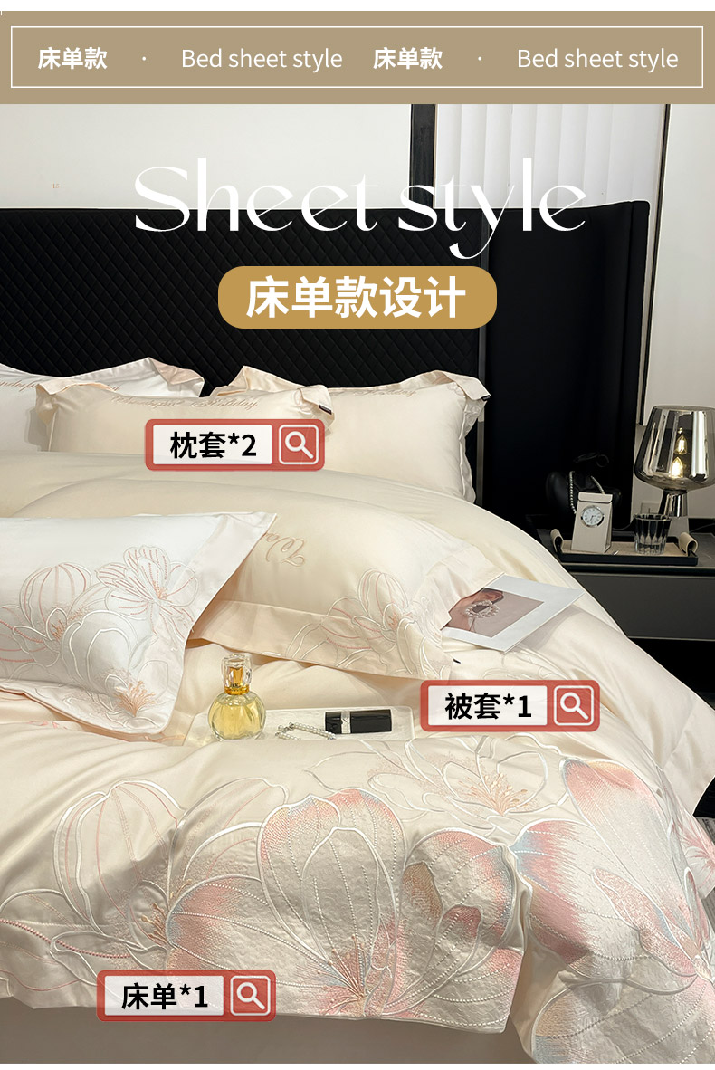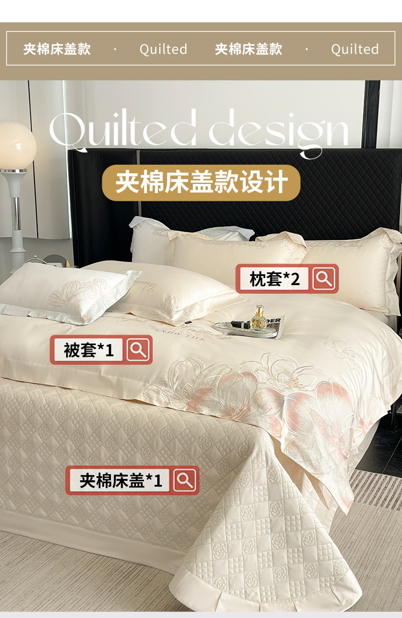 商品名称:2025新款轻奢风A类100支长绒棉四件套全棉纯棉重工刺绣床单床笠夹棉床笠床盖款高端床上用品-星慕 奶玉
