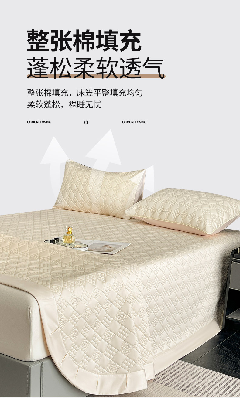 (总)2025轻奢风A类长绒棉夹棉床盖床笠三件套纯色绗绣四季高级感纯色全棉纯棉床上用品,茶绿,黛紫,慕蓝,奶玉,颜粉
