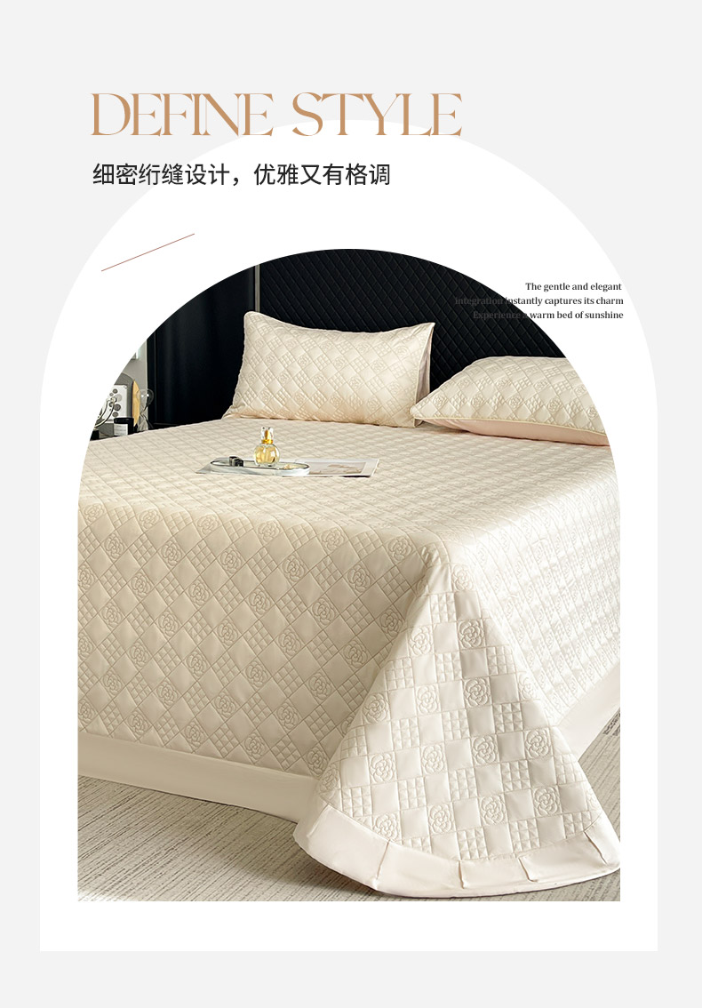 (总)2025新款A类100支长绒棉夹棉床盖三件套全棉纯棉加厚绗绣床单四季款床上用品,茶绿,黛紫,慕蓝,奶玉,颜粉