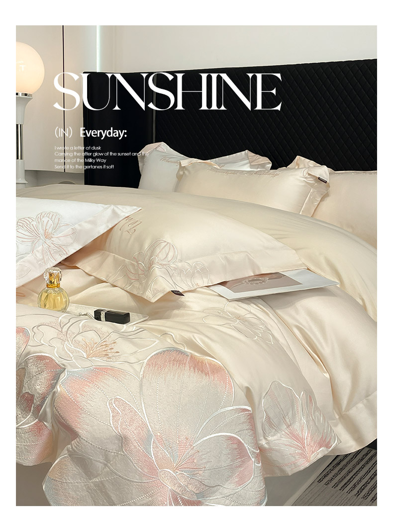 2025新款轻奢风A类100支长绒棉四件套全棉纯棉重工刺绣床单床笠夹棉床笠床盖款高端床上用品-星慕 奶玉