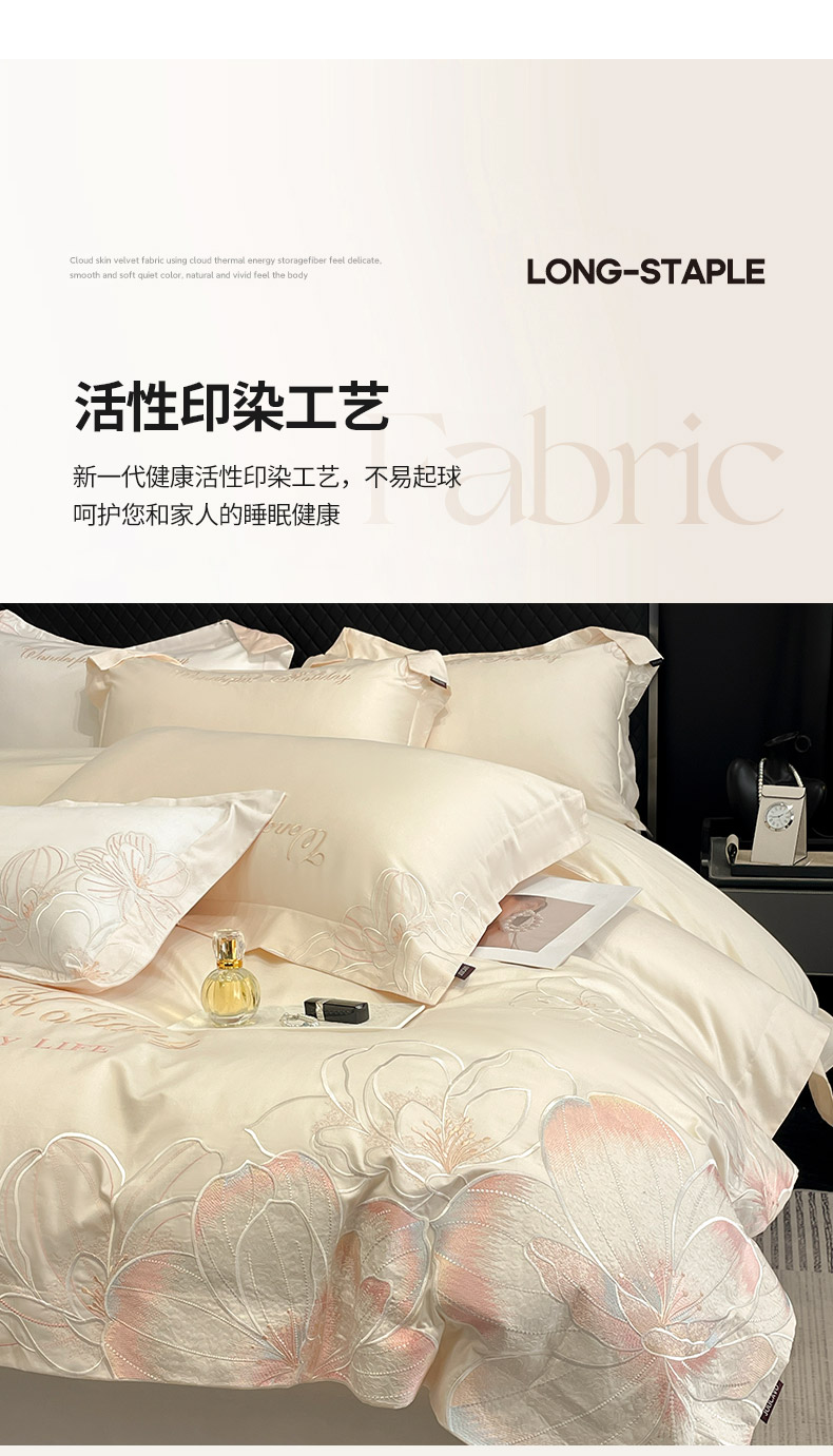 (总) 2025春夏长绒棉四件套纯棉全棉轻奢风床单被套重工刺绣床上用品,芊羽梦-白粉,芊羽梦-茶绿,芊羽梦-黛紫,芊羽梦-慕蓝,芊羽梦-颜粉