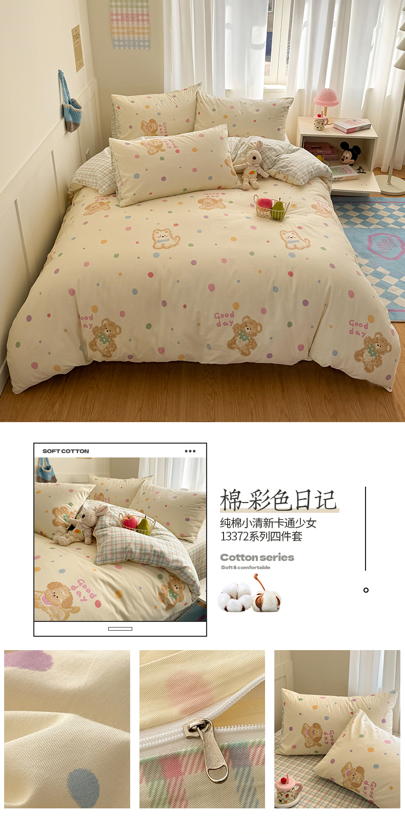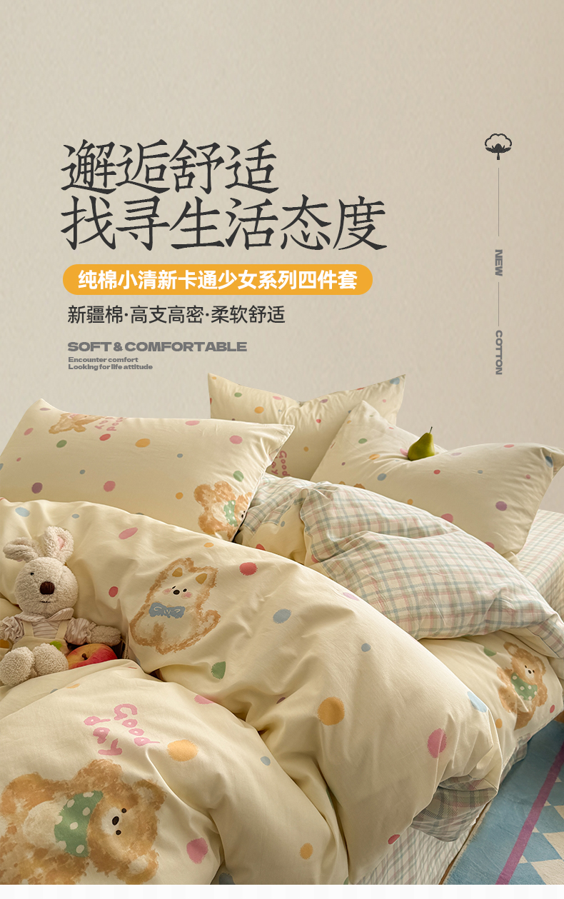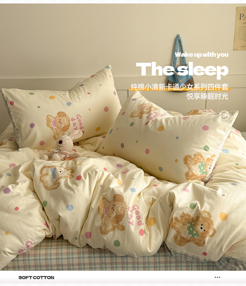 当前位置: 91家纺网 > 商品网购 > 床品套件 > 四件套 > 全棉普通四件套 > 桃子家居 2025新款纯棉小清新13372卡通可爱少女系列四件套 棉-彩色日记