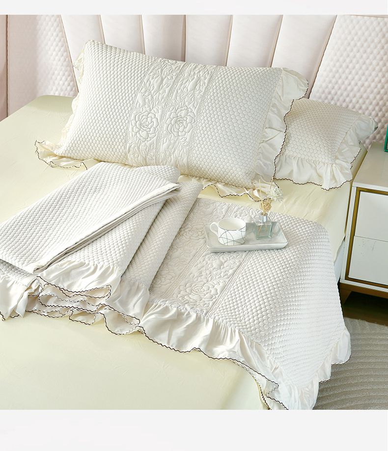 (总)OL床盖盖毯正反面13372全棉白蕾丝多功能三件套,橙色,豆绿,豆沙紫,灰紫,蓝灰,浅豆沙
