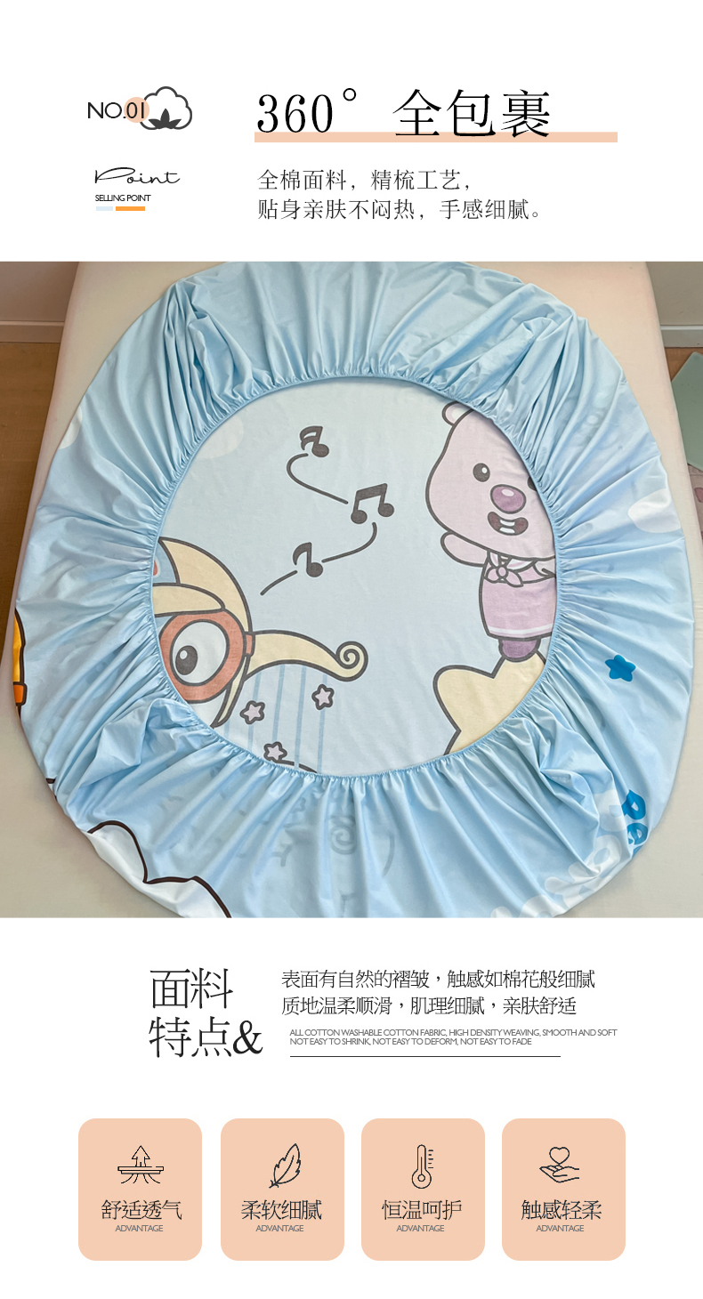 金爱家 2025新款全棉大版单品波乐乐床笠 棉单品波乐乐-音乐派对