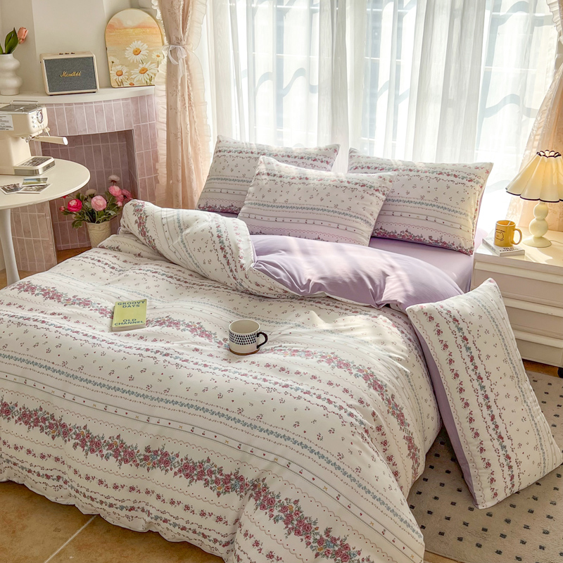 暖伊家居 2025新款A类针织双层纱四件套 甜也,甜也