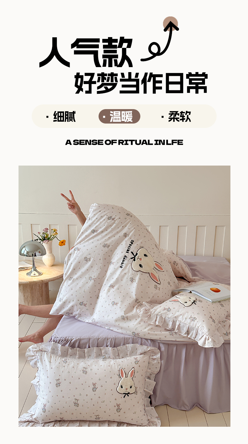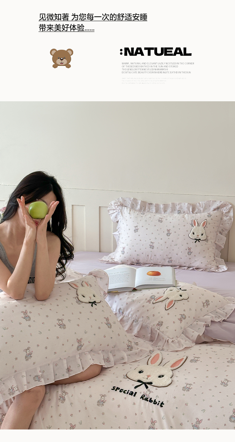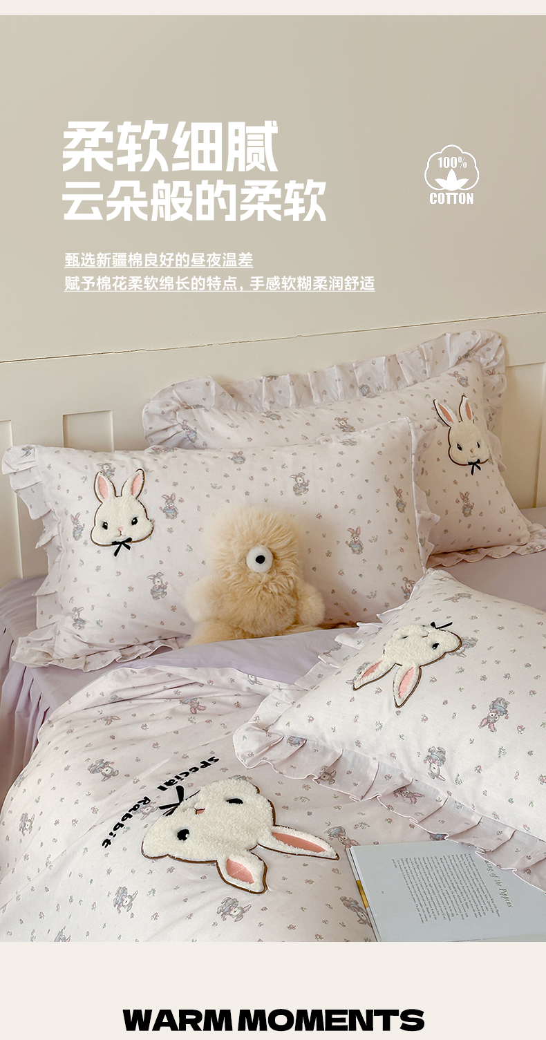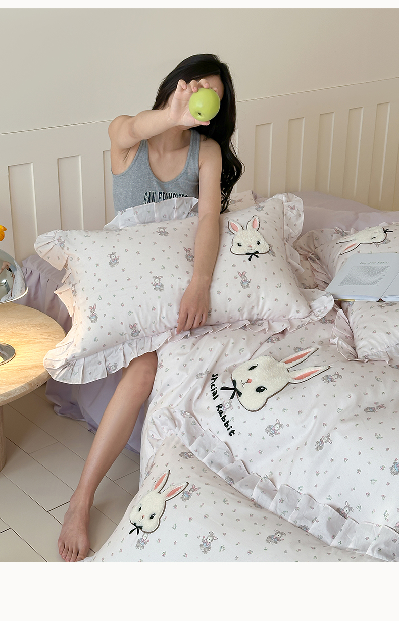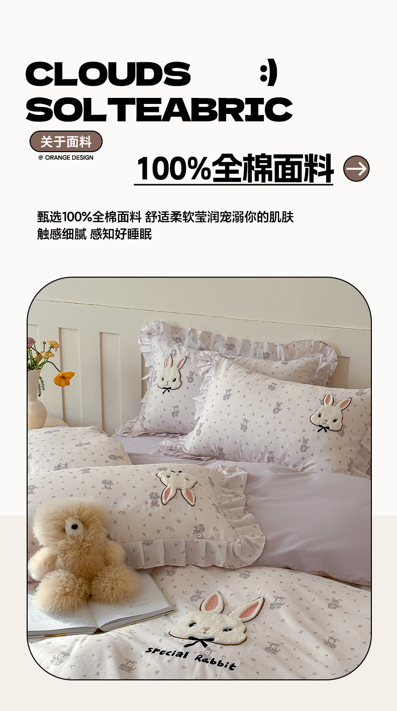 当前位置: 91家纺网 > 商品网购 > 床品套件 > 四件套 > 全棉普通四件套 > 卡巴伦 床裙款-全棉卡通刺绣套件 雪兔精灵