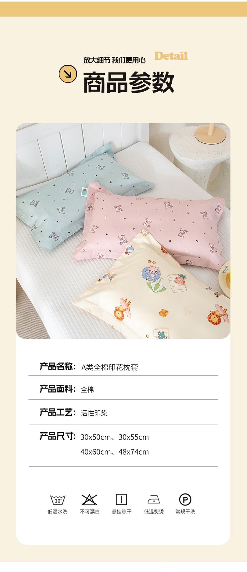 (总)良佐生活 2023新款A类60支全棉贡缎乳胶枕枕套儿童橡胶枕头套高低,口袋熊,恐龙宝宝,开心熊 粉,冰淇淋,恐龙乐园,花仙兔,贝塔 粉,挖掘车