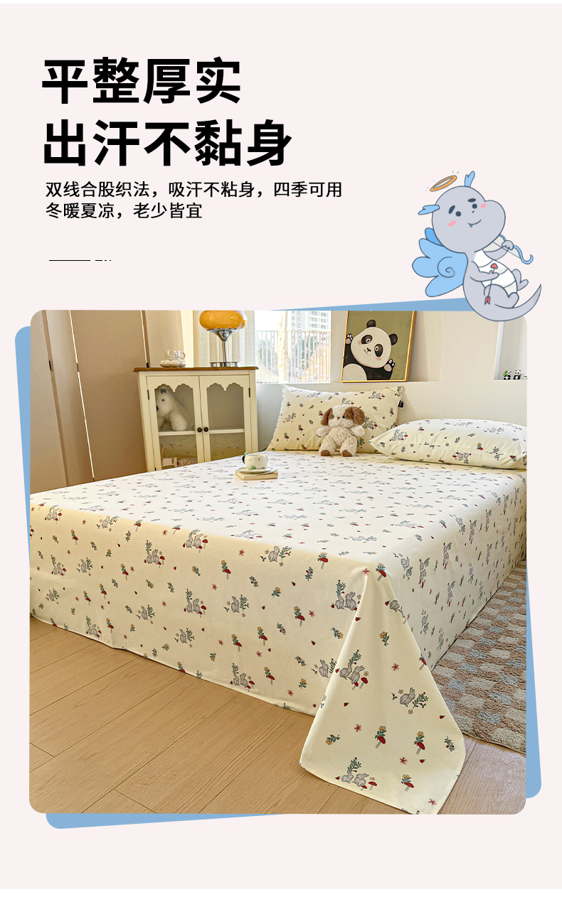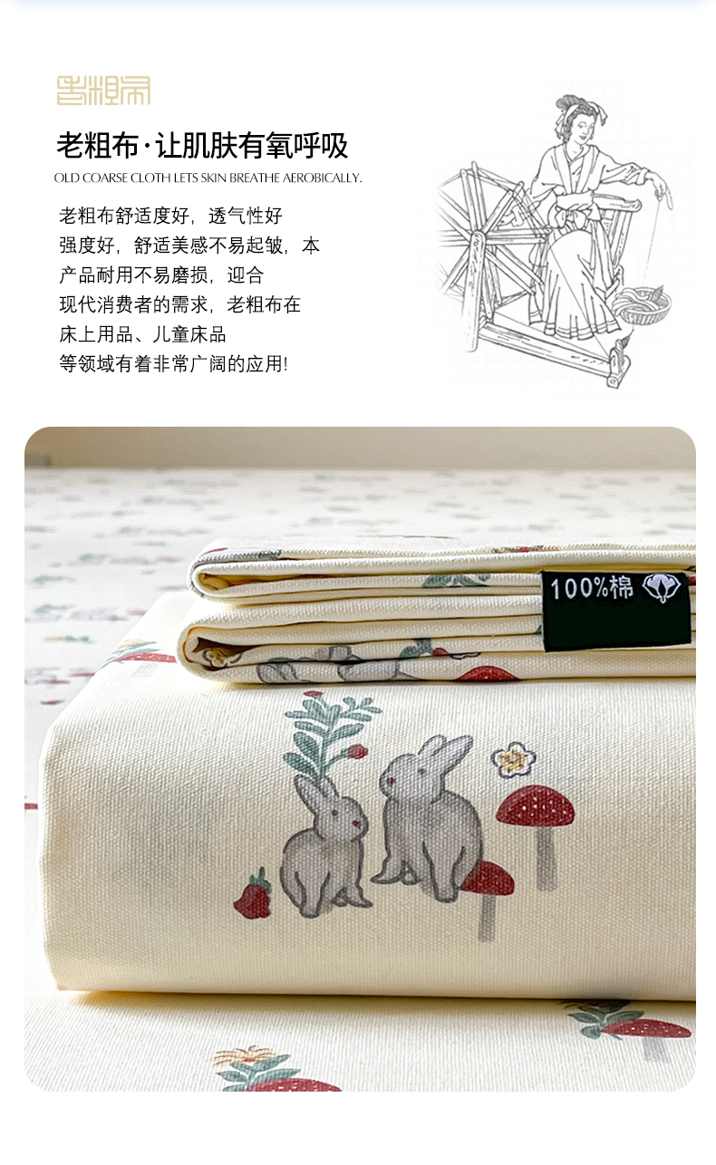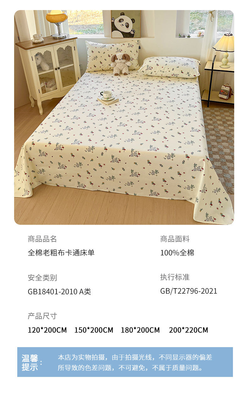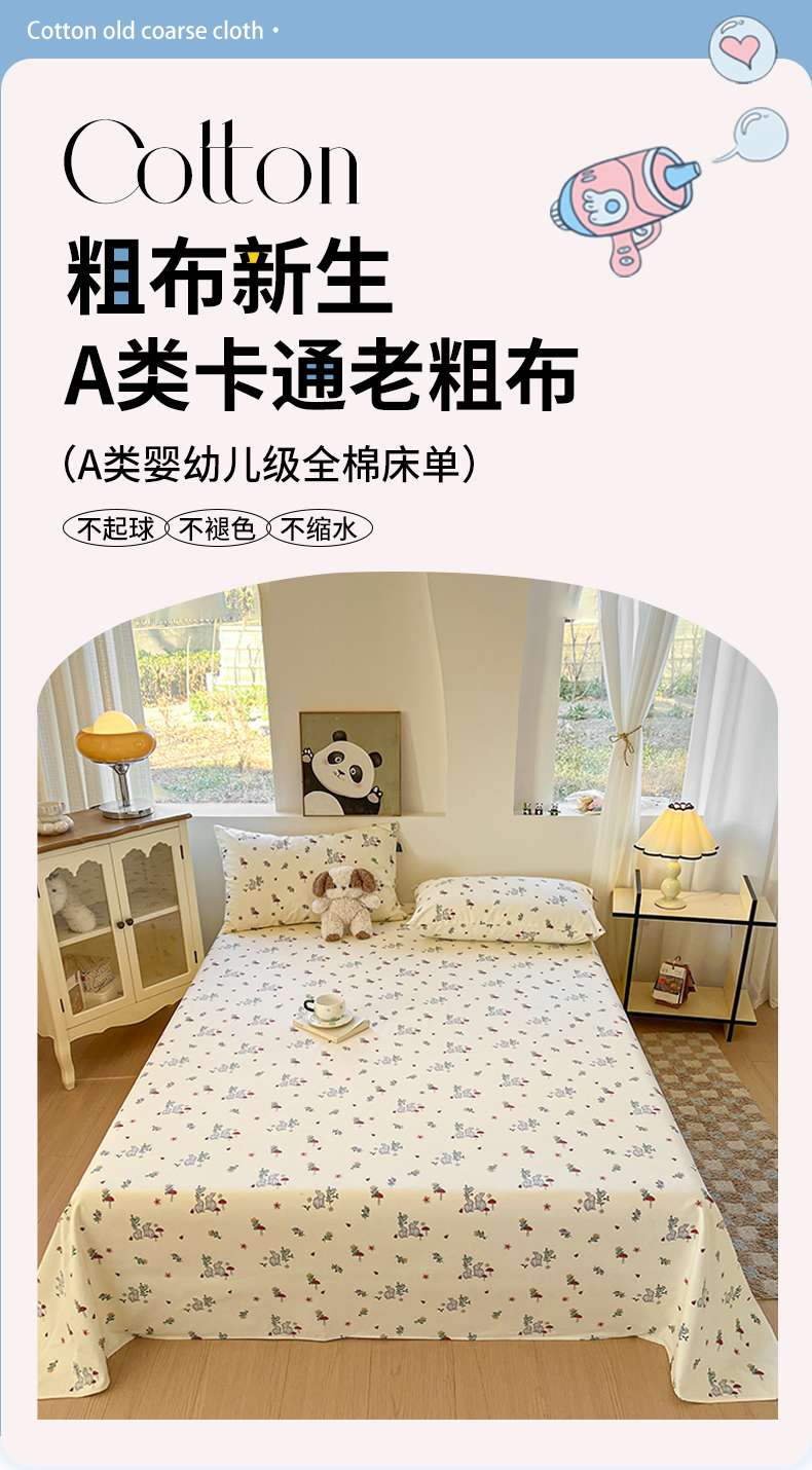 商品名称:鑫钰 2025新款纯棉老粗布单床单-卡通系列 花枝免