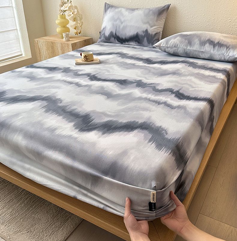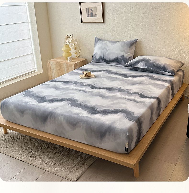 鑫钰 2025新款老粗布床单床笠系列-格纹系列 水墨纹
