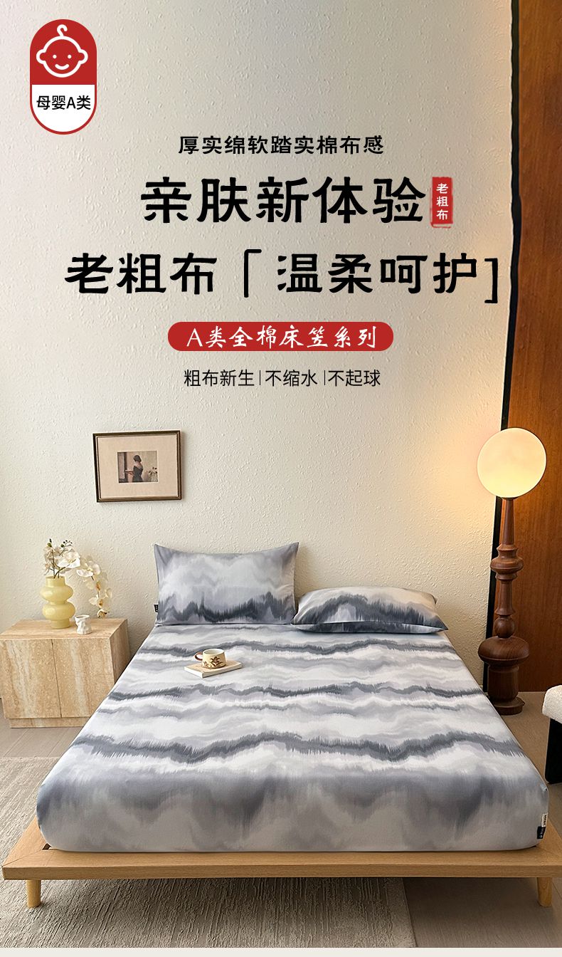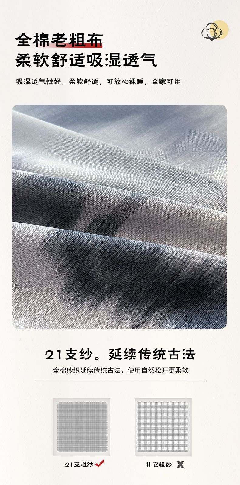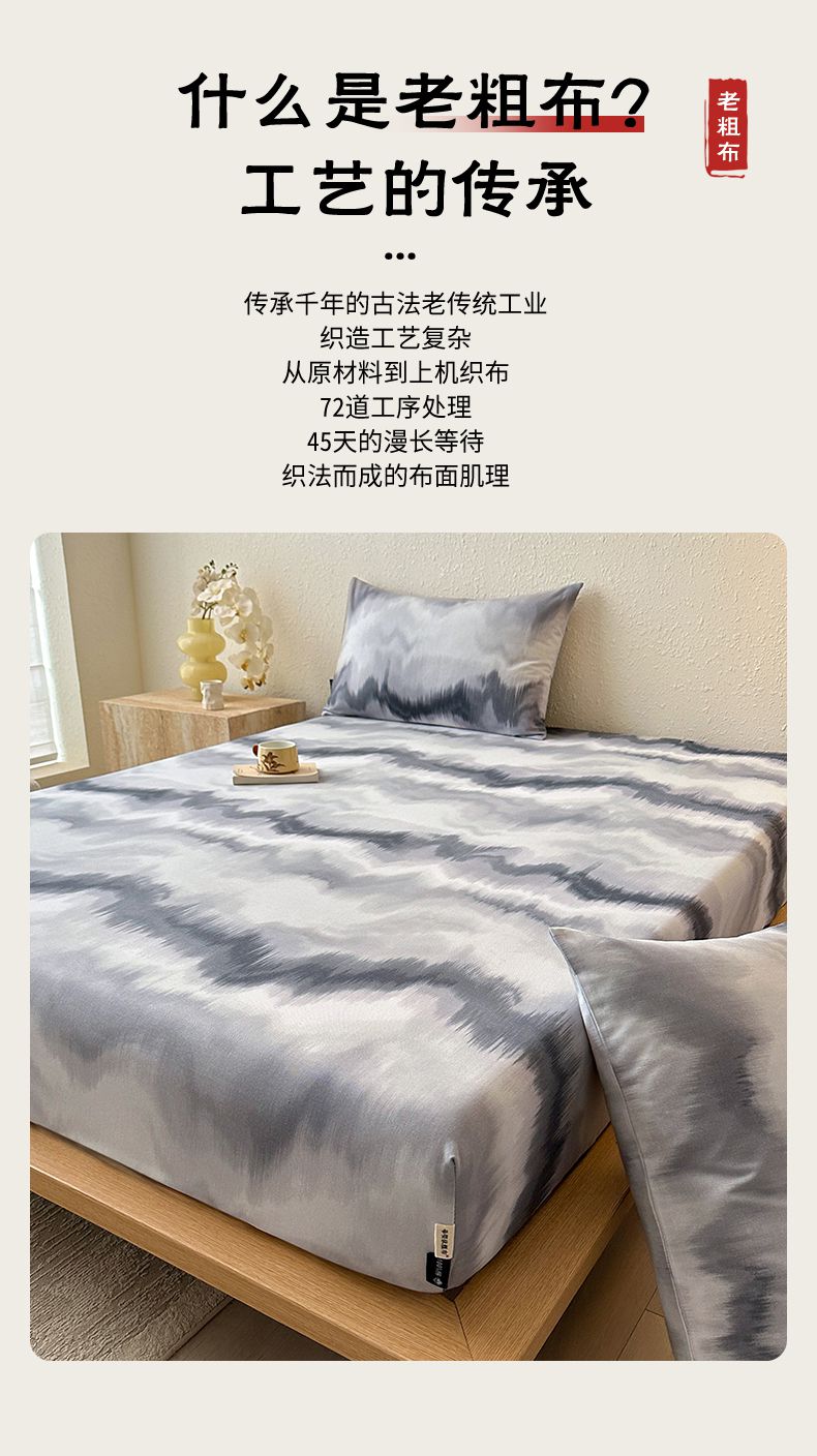商品名称:鑫钰 2025新款老粗布床单床笠系列-格纹系列 水墨纹