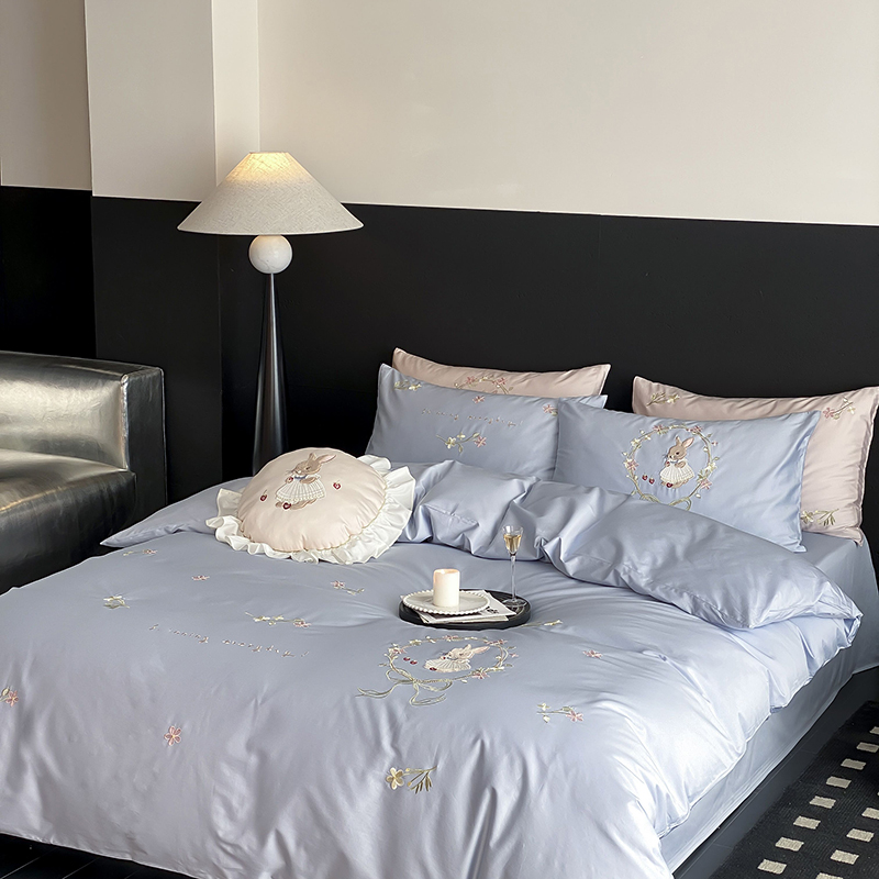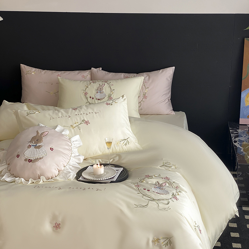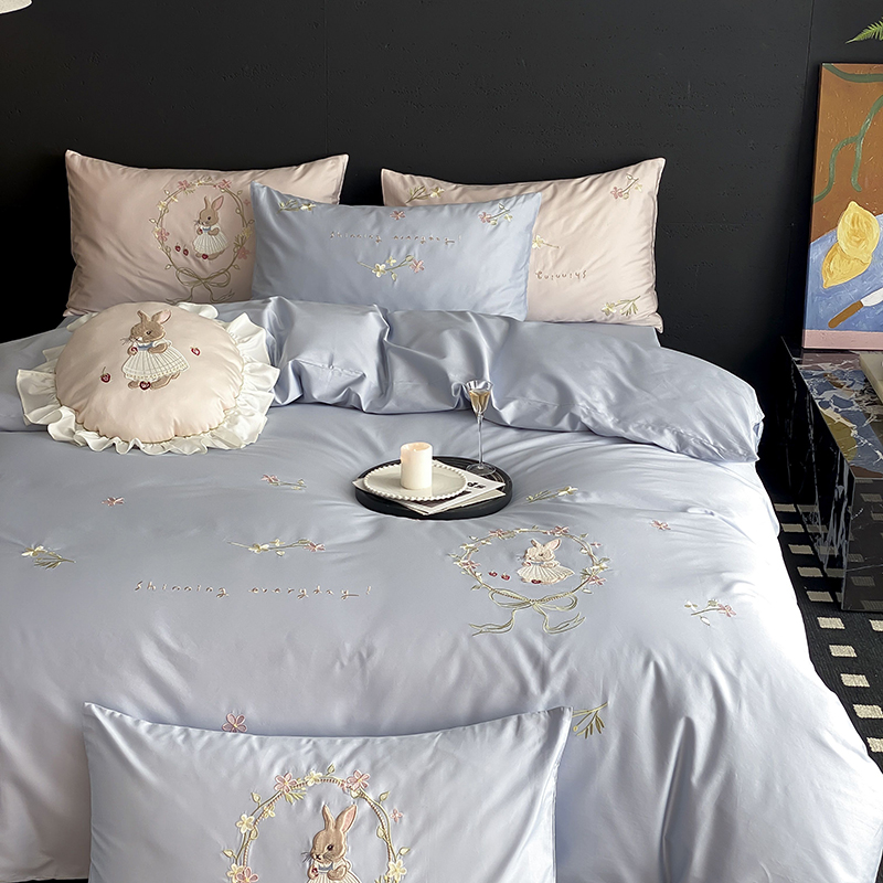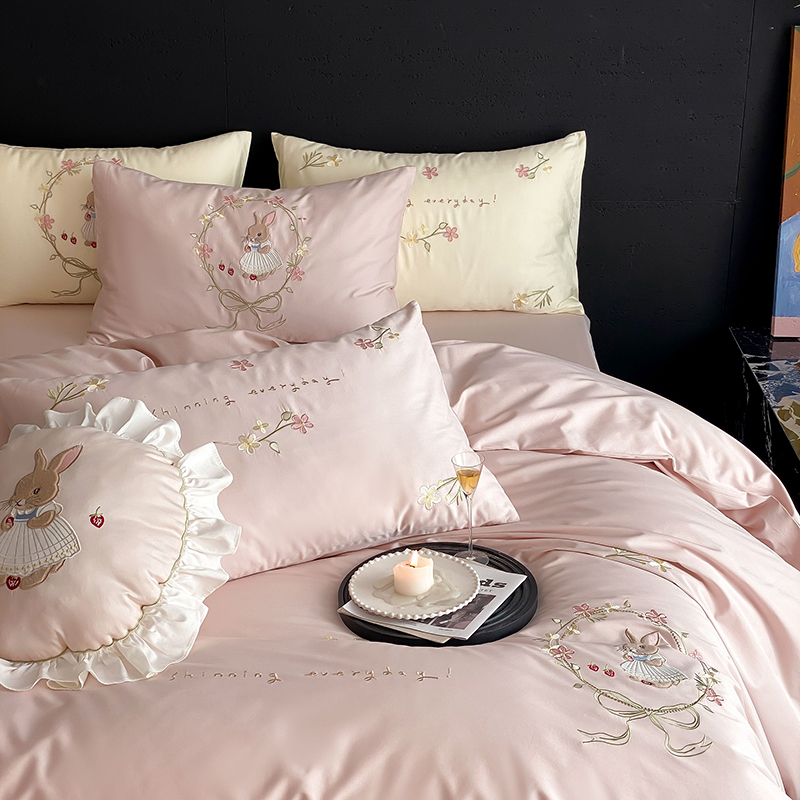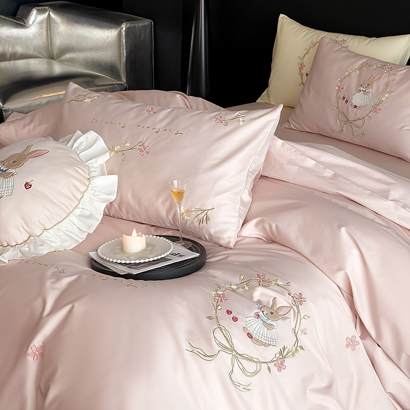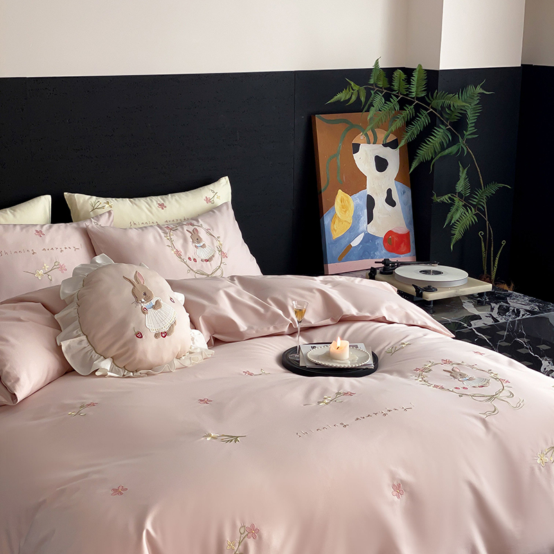 商品名称:鹿班家居 2025春夏款100S长绒棉刺绣四件套-萌兔花园场景二【标准会员-20】 萌兔花园-粉色