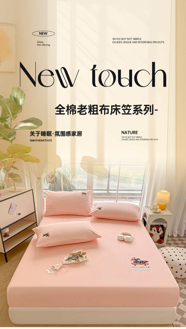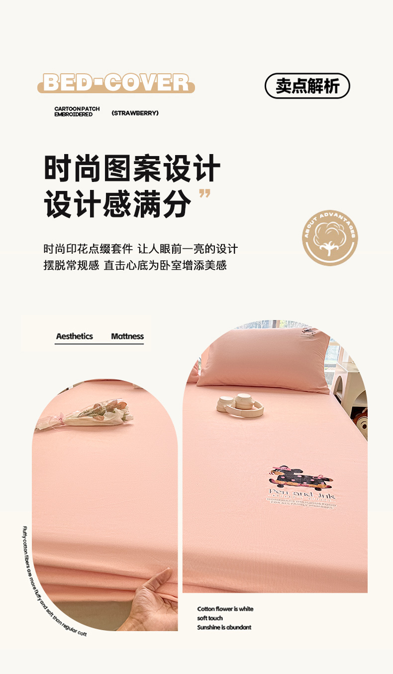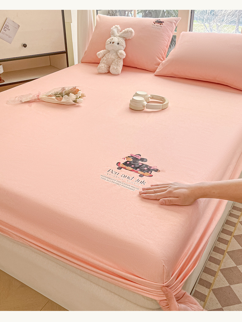 • 91家纺网 家纺一手货源 找家纺 博雅 2025新款全棉老粗布烫画床笠系列 粉色-波点狗