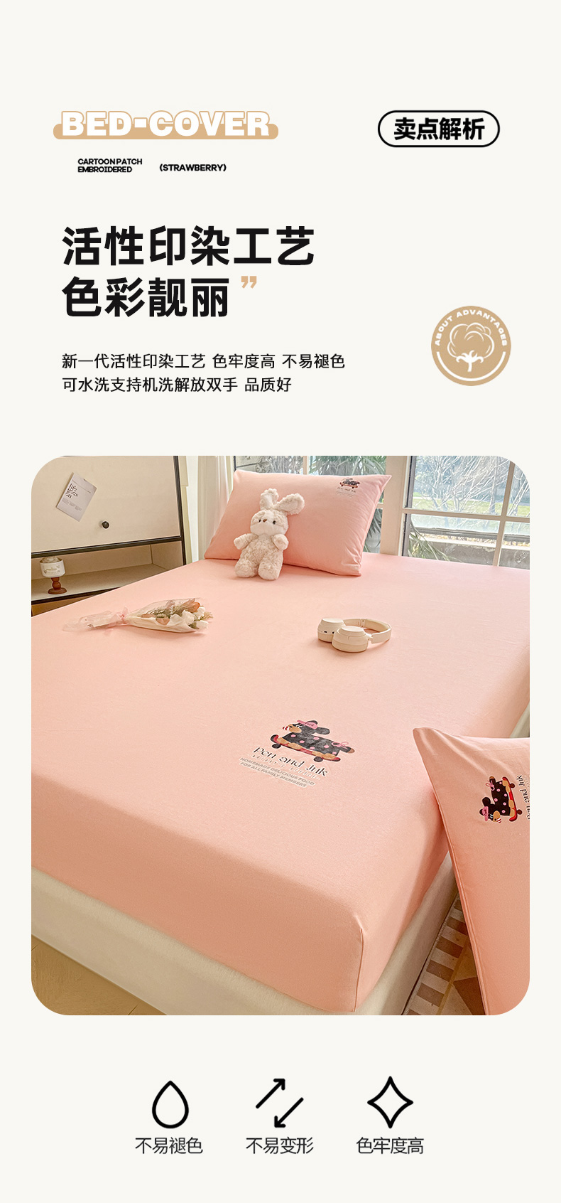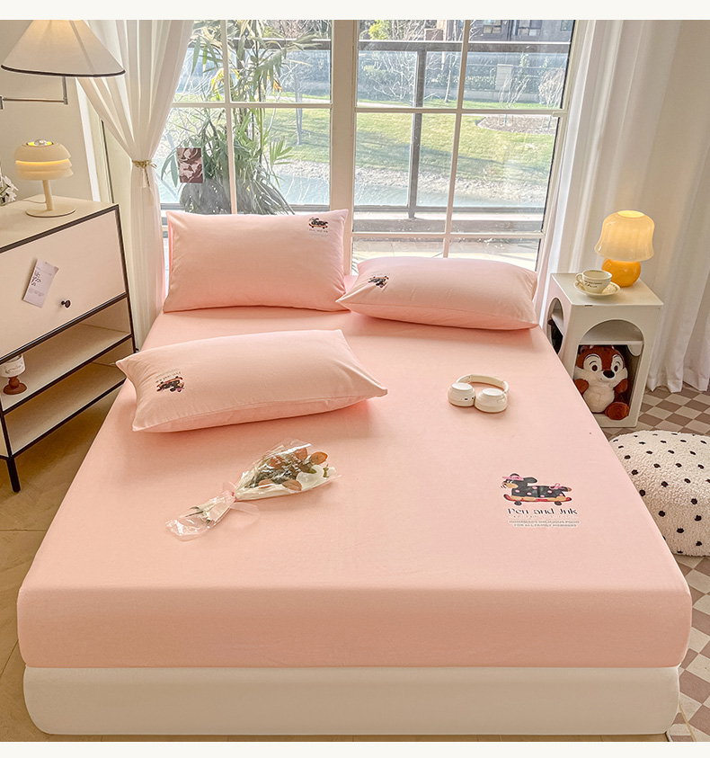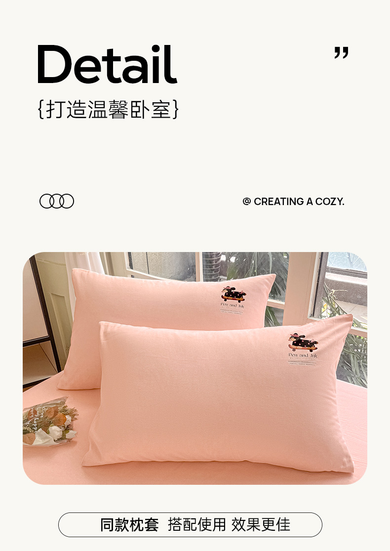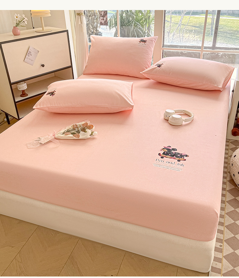 • 91家纺网 家纺一手货源 找家纺 博雅 2025新款全棉老粗布烫画床笠系列 粉色-波点狗
