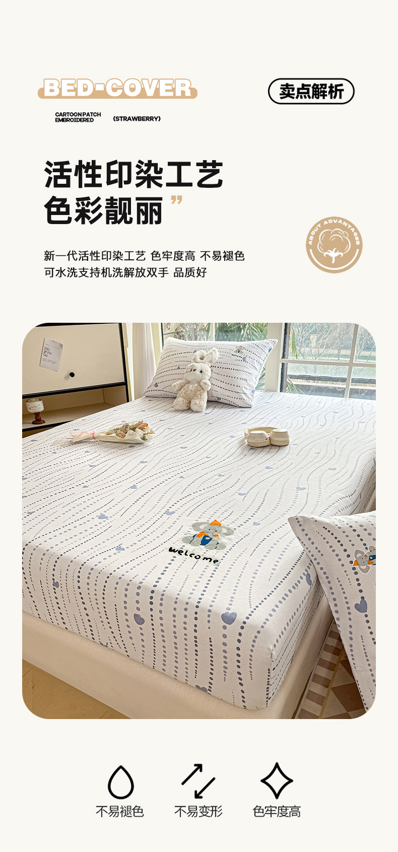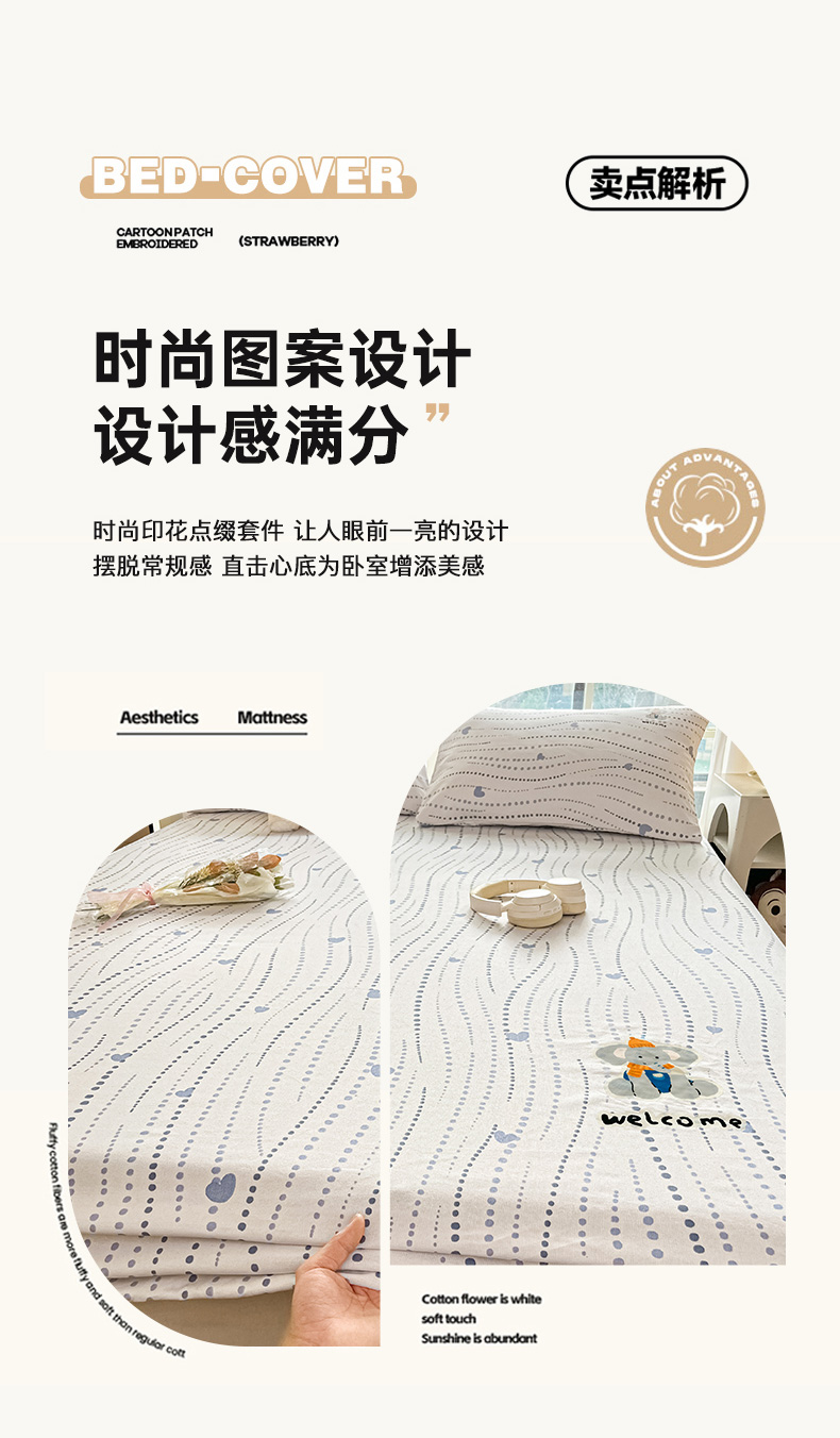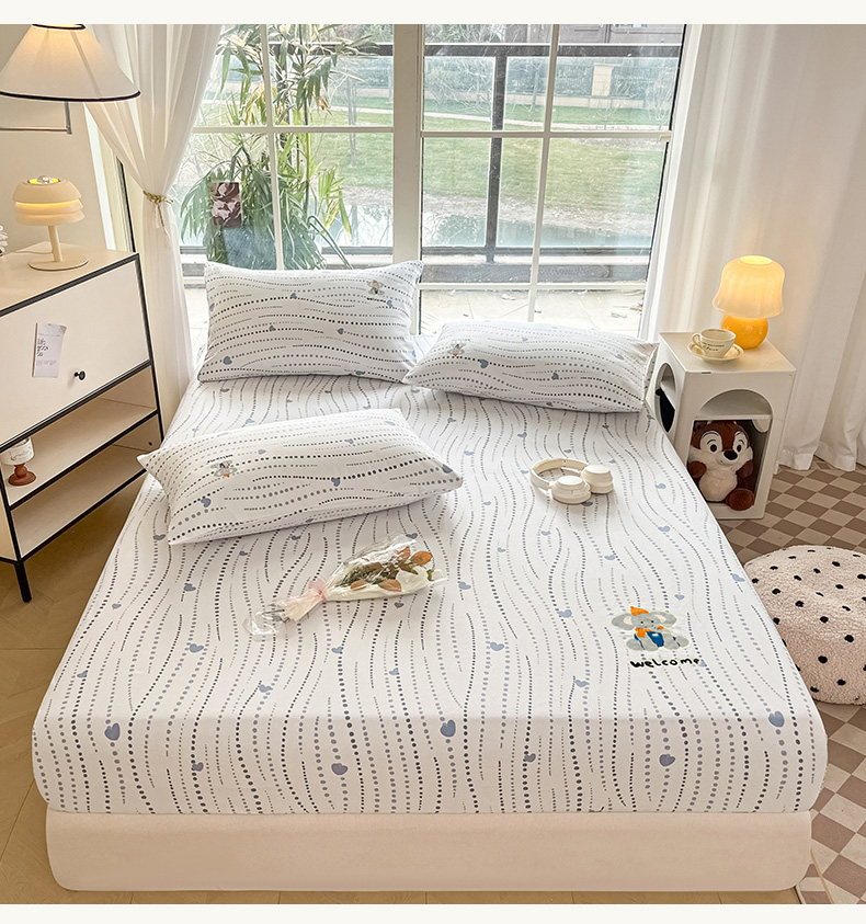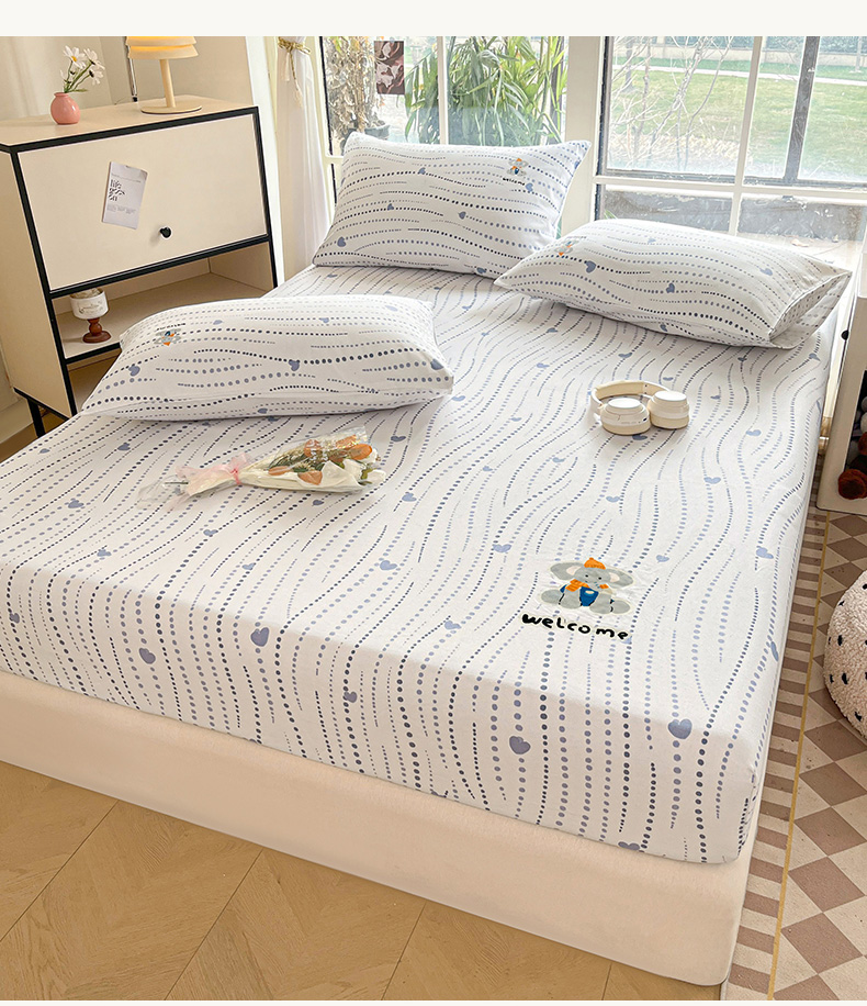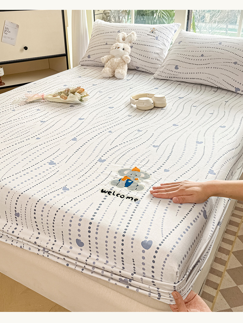 博雅 2025新款全棉老粗布烫画床笠系列 心动-调皮象
