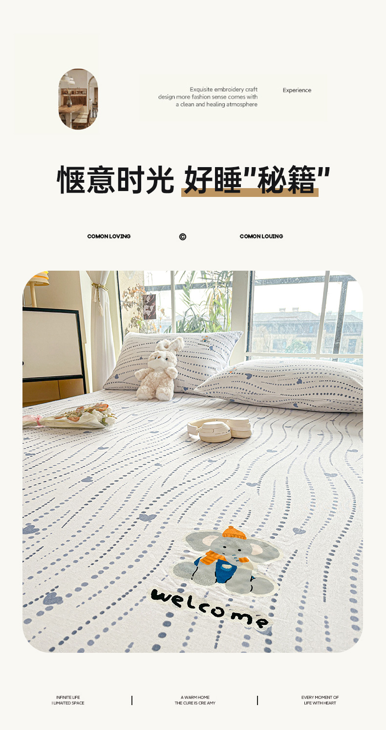 • 91家纺网 家纺一手货源 找家纺 博雅 2025新款全棉老粗布烫画床笠系列 心动-调皮象