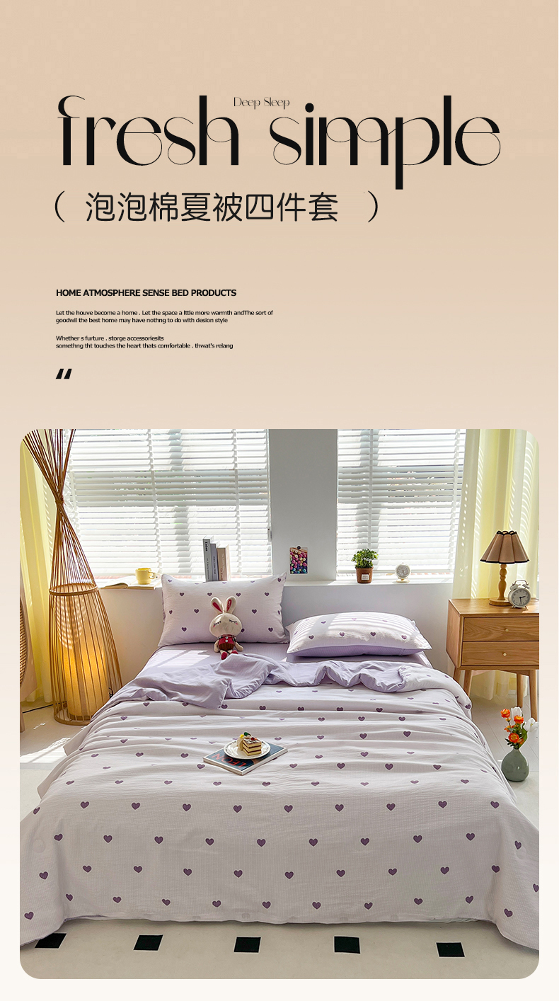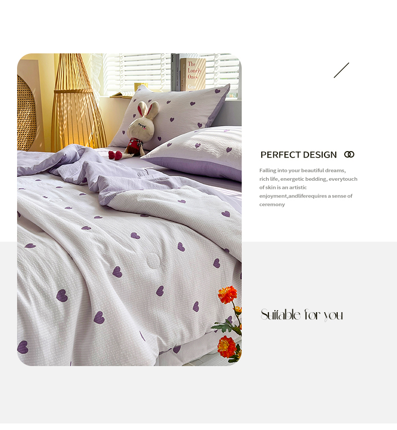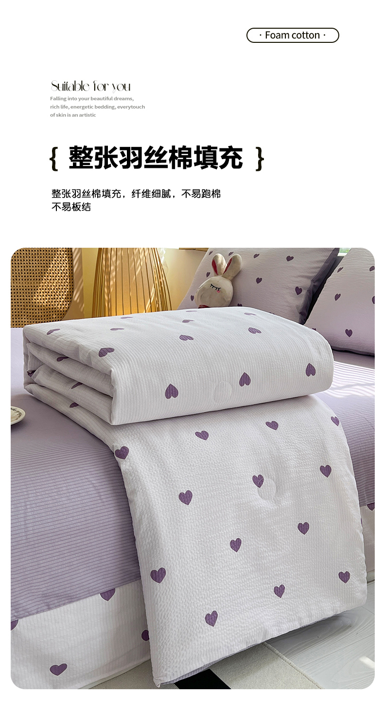 梦莱情 2025新款泡泡棉夏被 紫色小心心