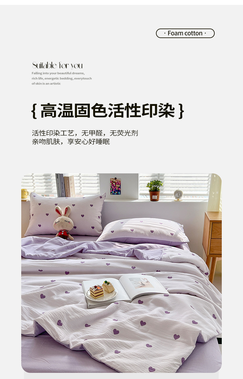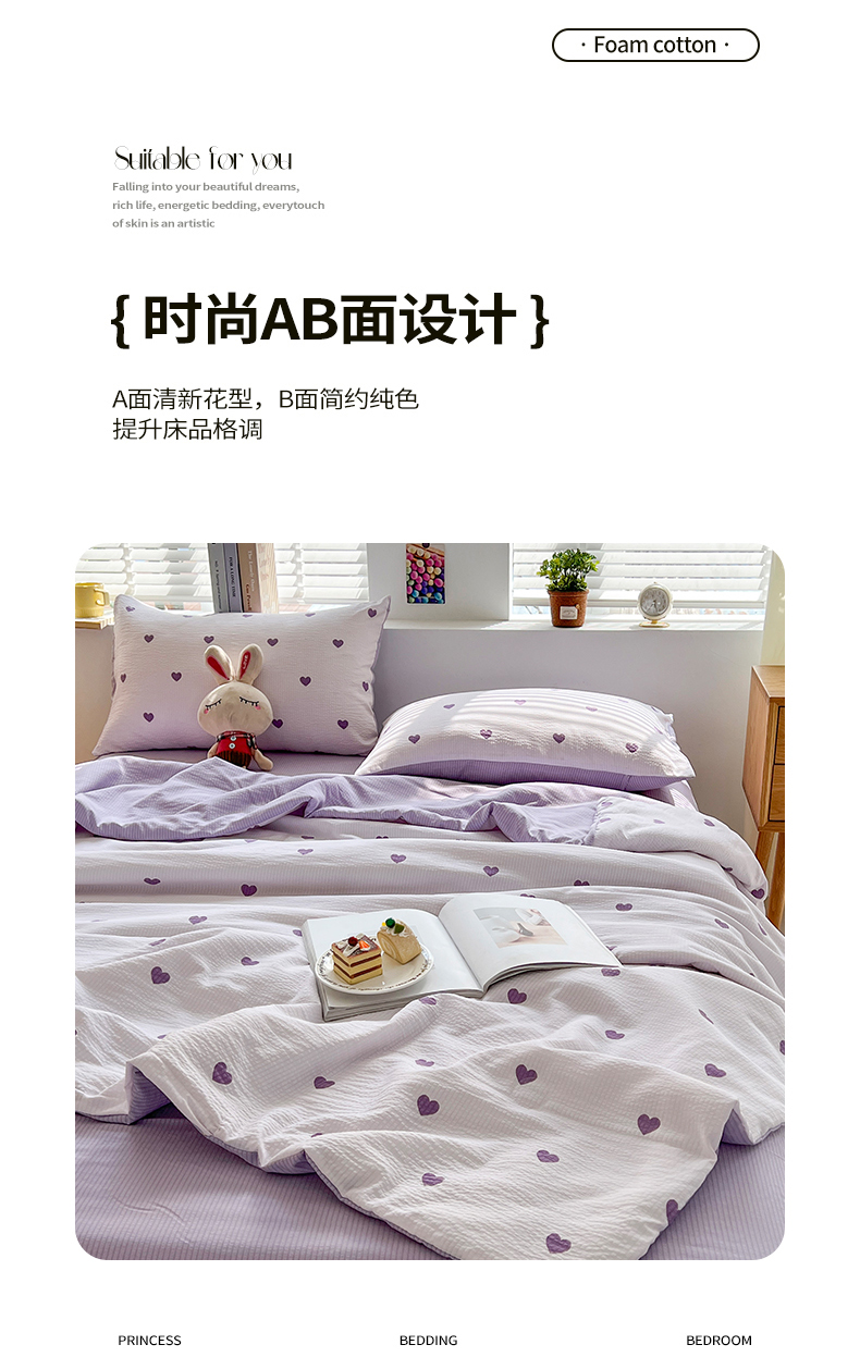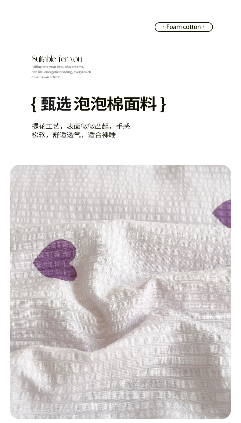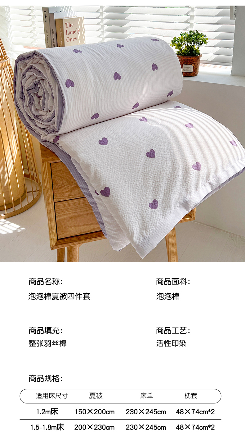 商品名称:梦莱情 2025新款泡泡棉夏被 紫色小心心