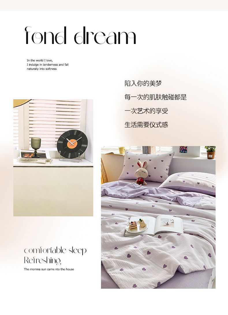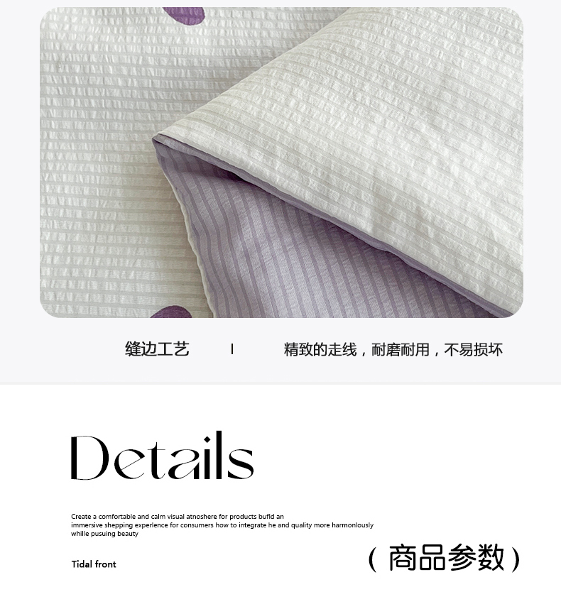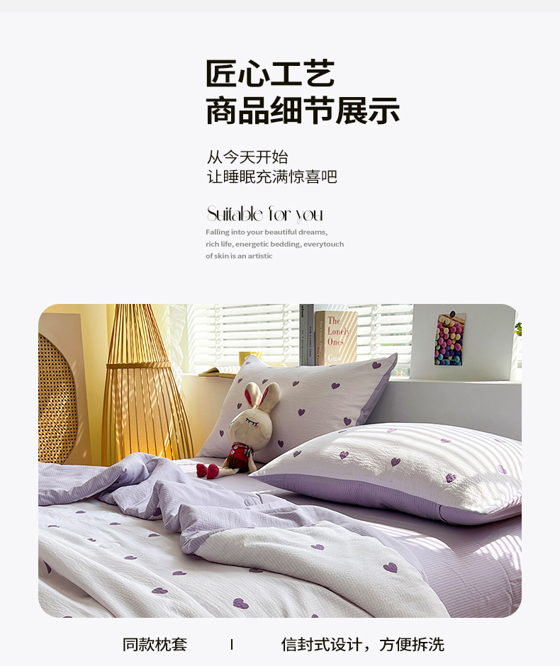 梦莱情 2023新款泡泡纱水洗棉四件套 泡泡奶芙-紫,泡泡奶芙-紫