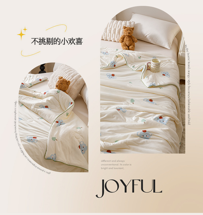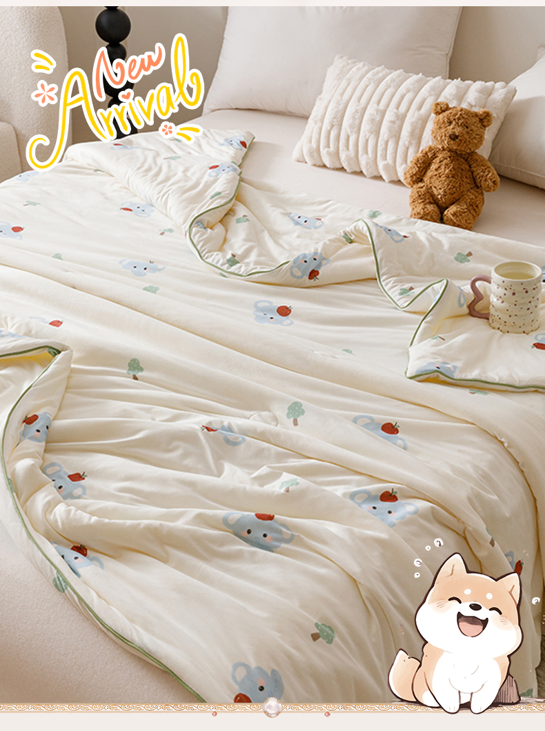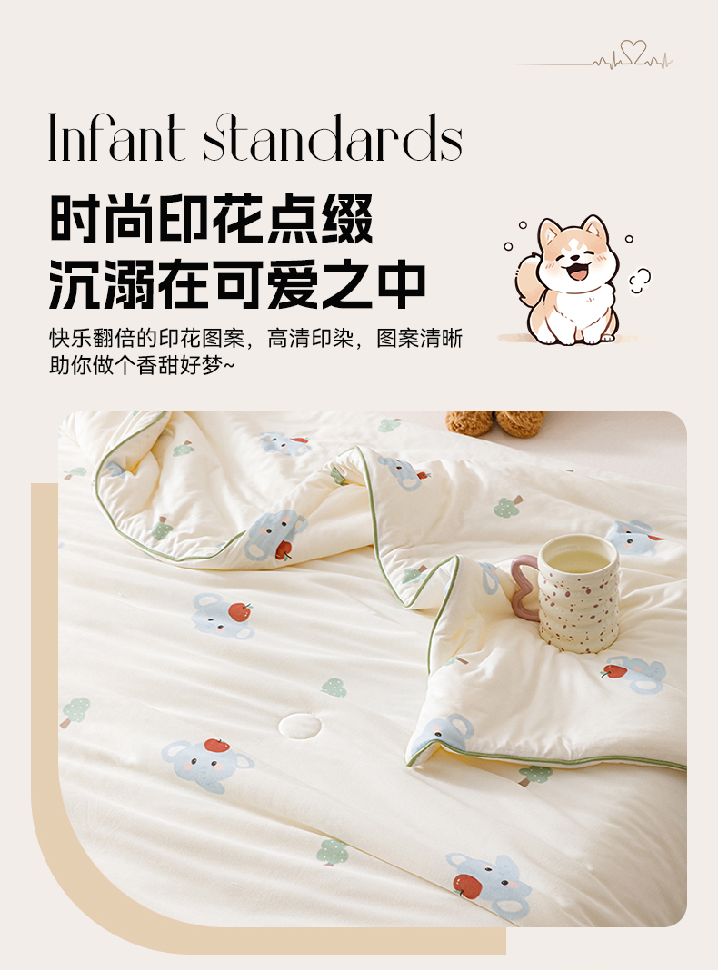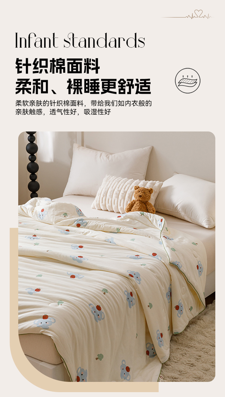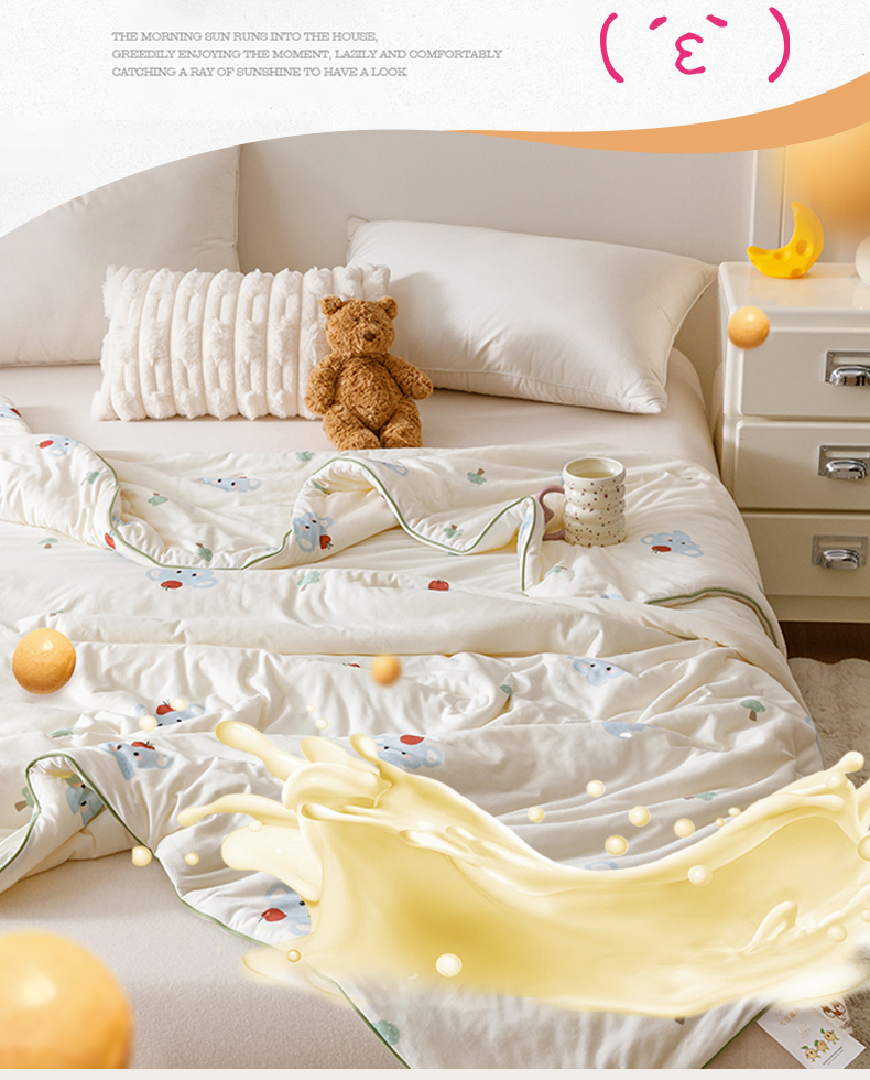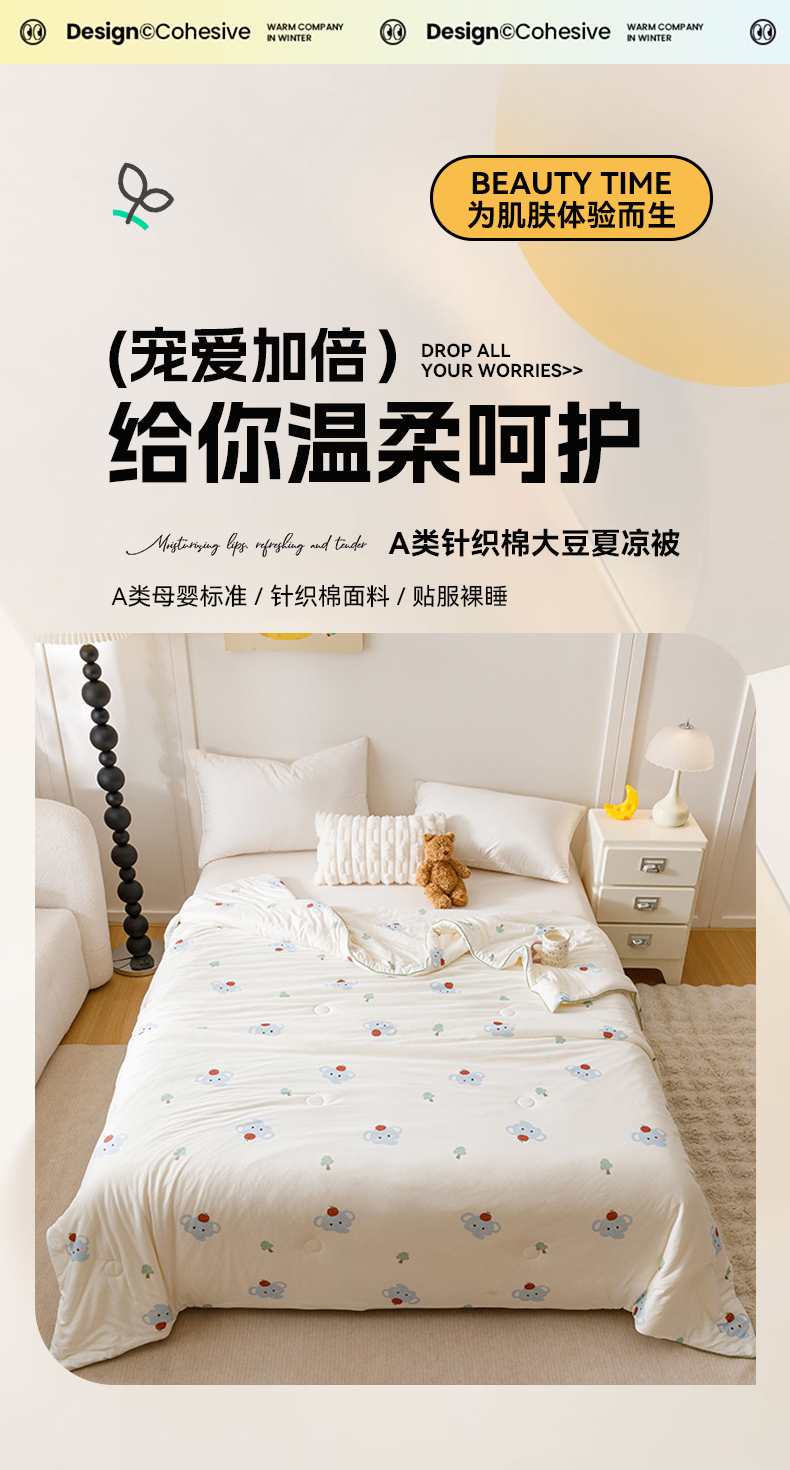 商品名称:优被业 2025新款A类牛奶丝针织棉夏被20%大豆(四周踩棉)软糯夏凉被空调被 羞羞象