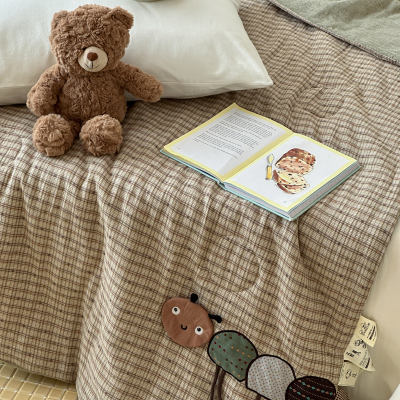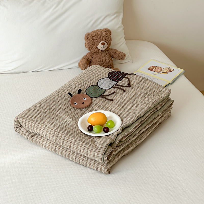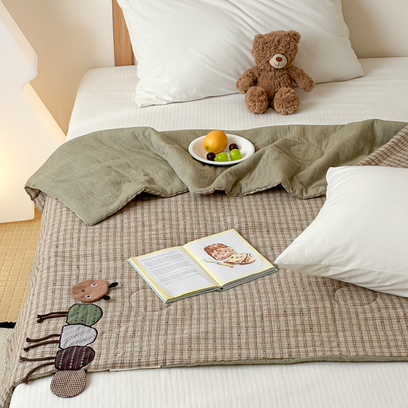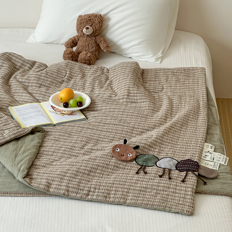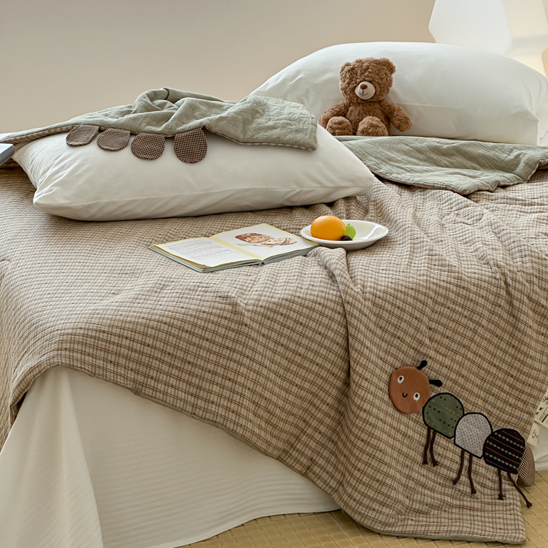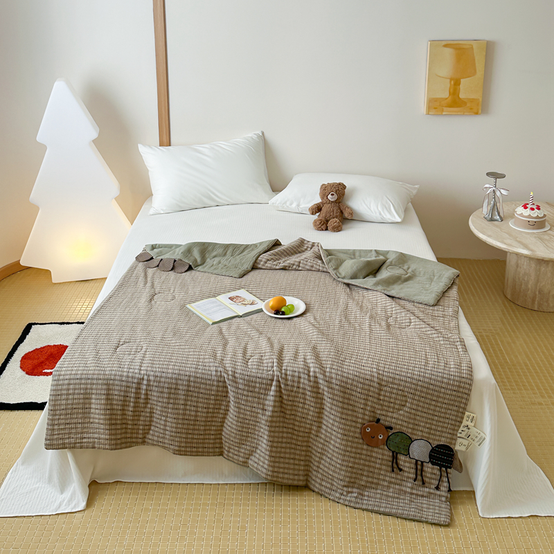 • 91家纺网 家纺一手货源 找家纺 月夏 2025新款全棉双层纱纱布夏被夏凉被空调被 毛毛虫-绿【填充新疆棉花】