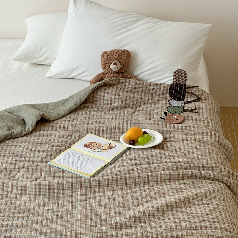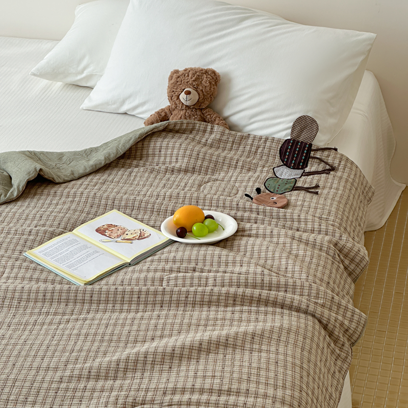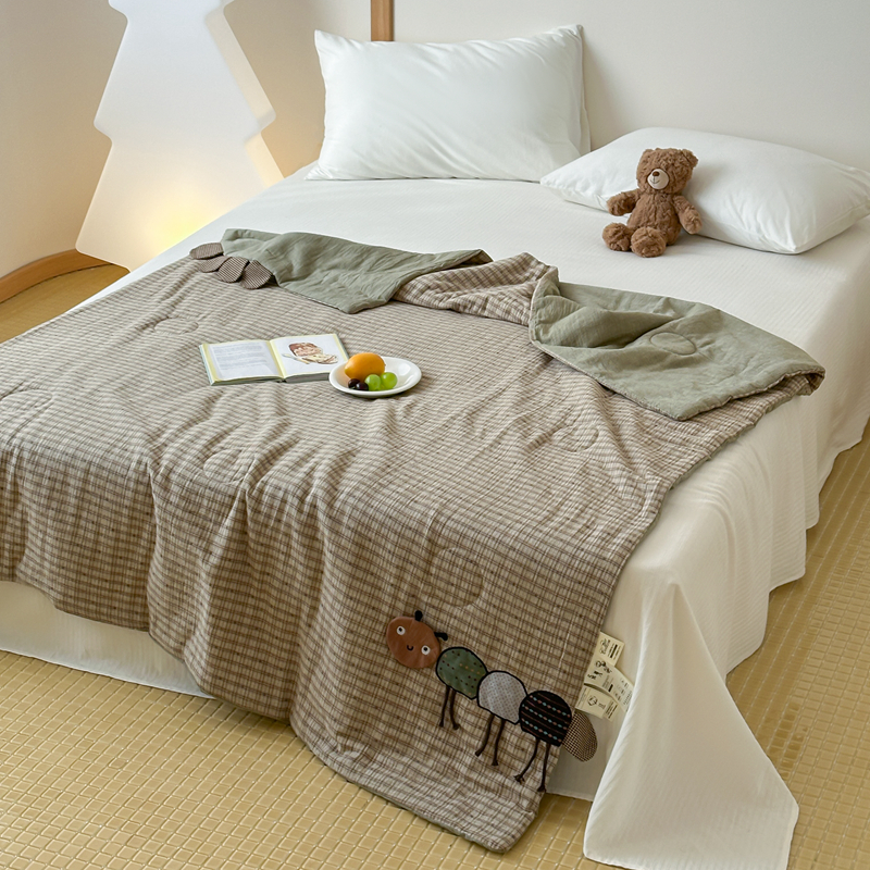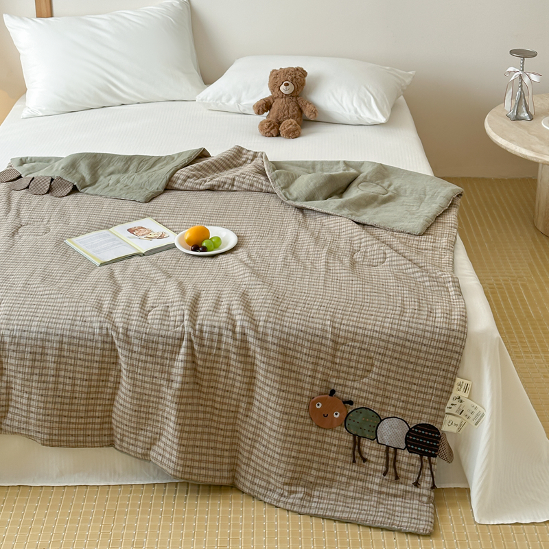 月夏 2025新款全棉双层纱纱布夏被夏凉被空调被 毛毛虫-绿【填充新疆棉花】