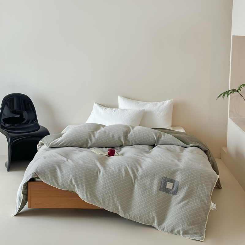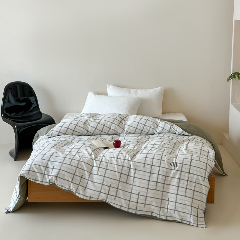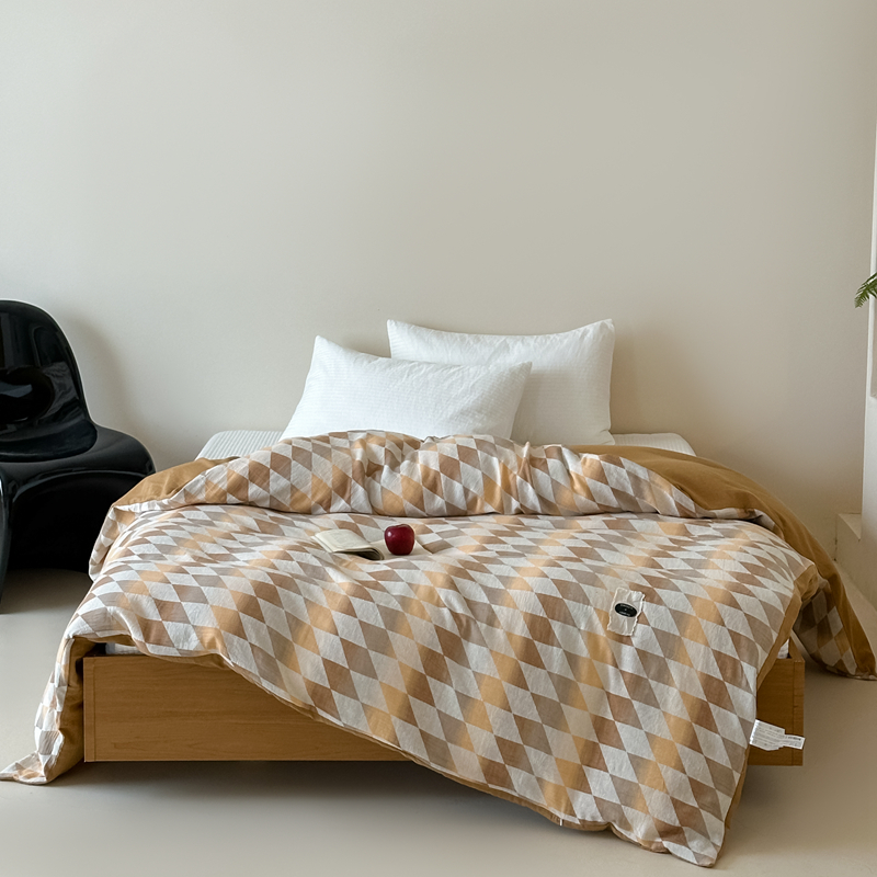 (总)月夏 2025新款全棉双层纱被套全棉被套单被套,莫克-绿,莫克-橘,莫克-灰,莫克-咖,吉尔伯特-浅咖,吉尔伯特-米白,格韵风华-橘,格韵风华-灰
