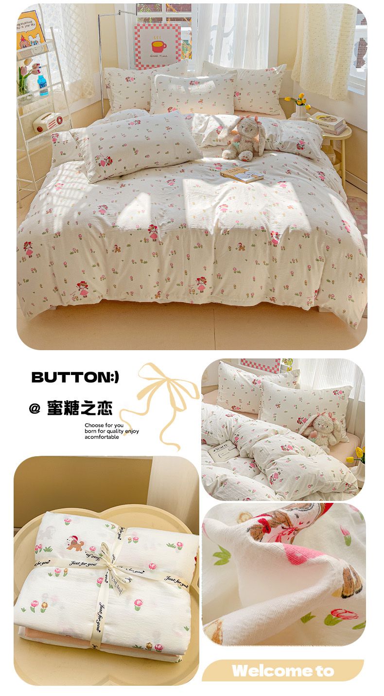 当前位置: 91家纺网 > 商品网购 > 床品套件 > 四件套 > 双层纱四件套 > 优选 2025新款加厚云感棉双层纱四件套小碎花被套床单床笠款学生三件套新款直播热款 小波点