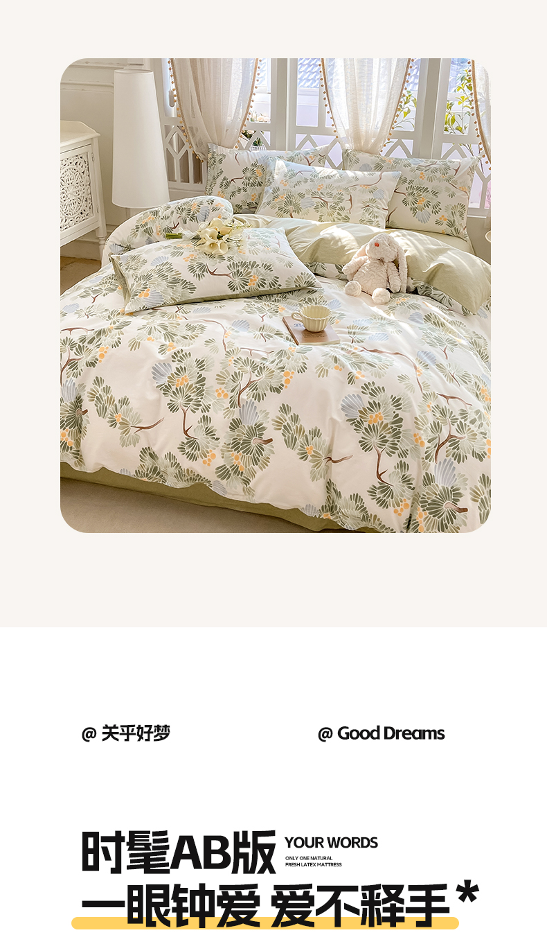 宜家坊 2025早春新品全棉纯棉喷气13070小清新印花纯棉四件套-风格二 萝樱