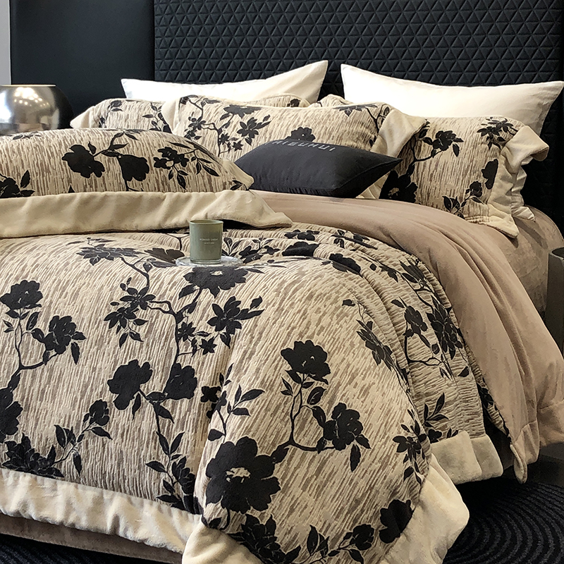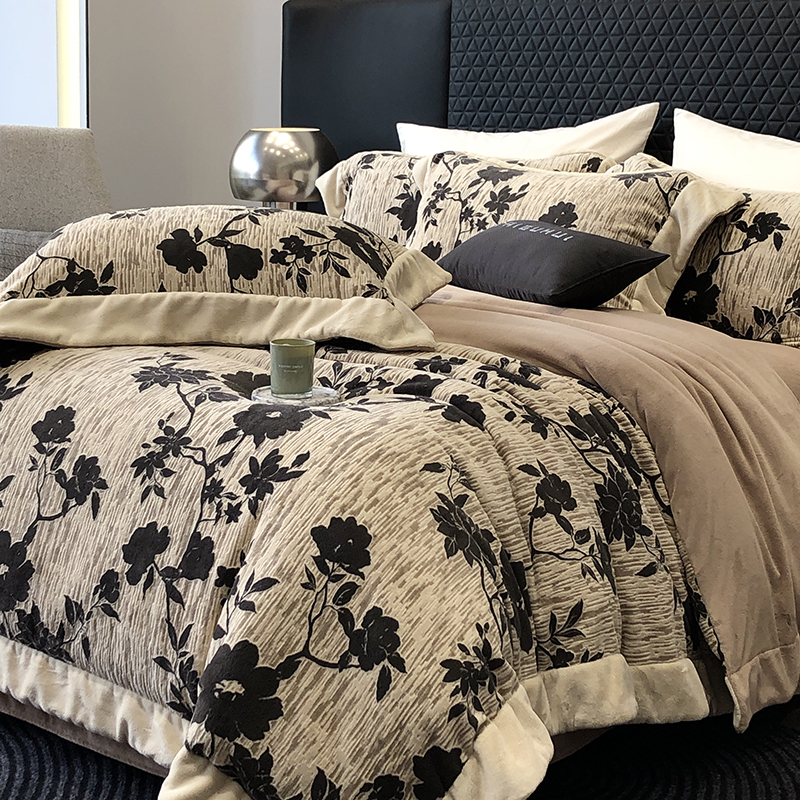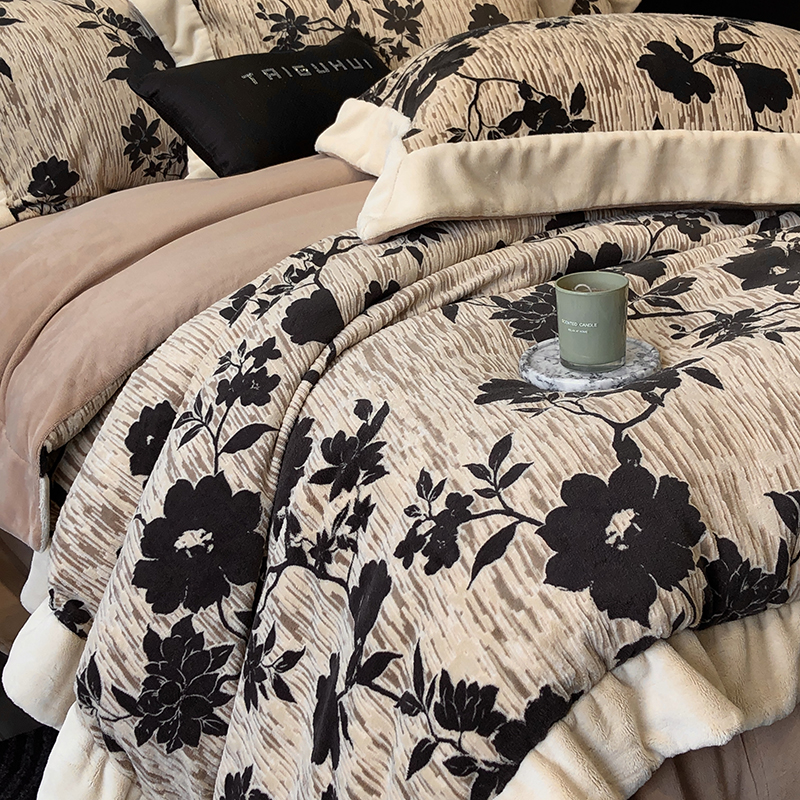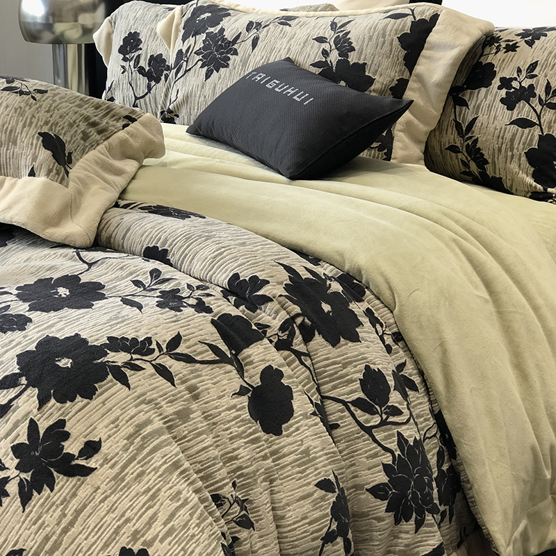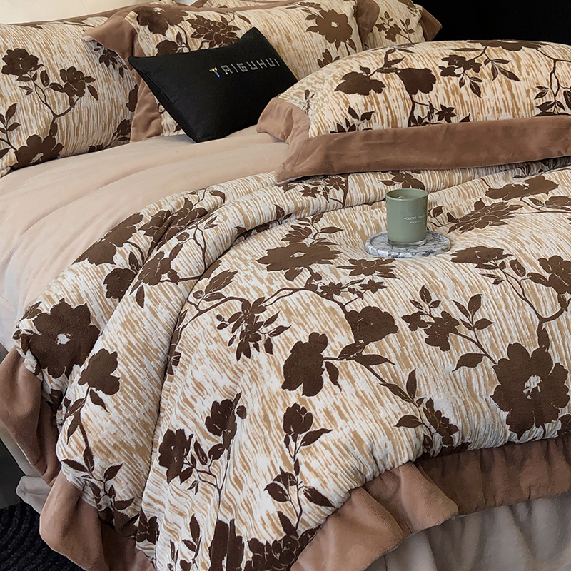 (总)太古汇家居 2025新款高克重牛奶绒四件套-繁花系列,繁花-琥珀杏,繁花-经典紫,繁花-慕斯粉,繁花-水雾蓝