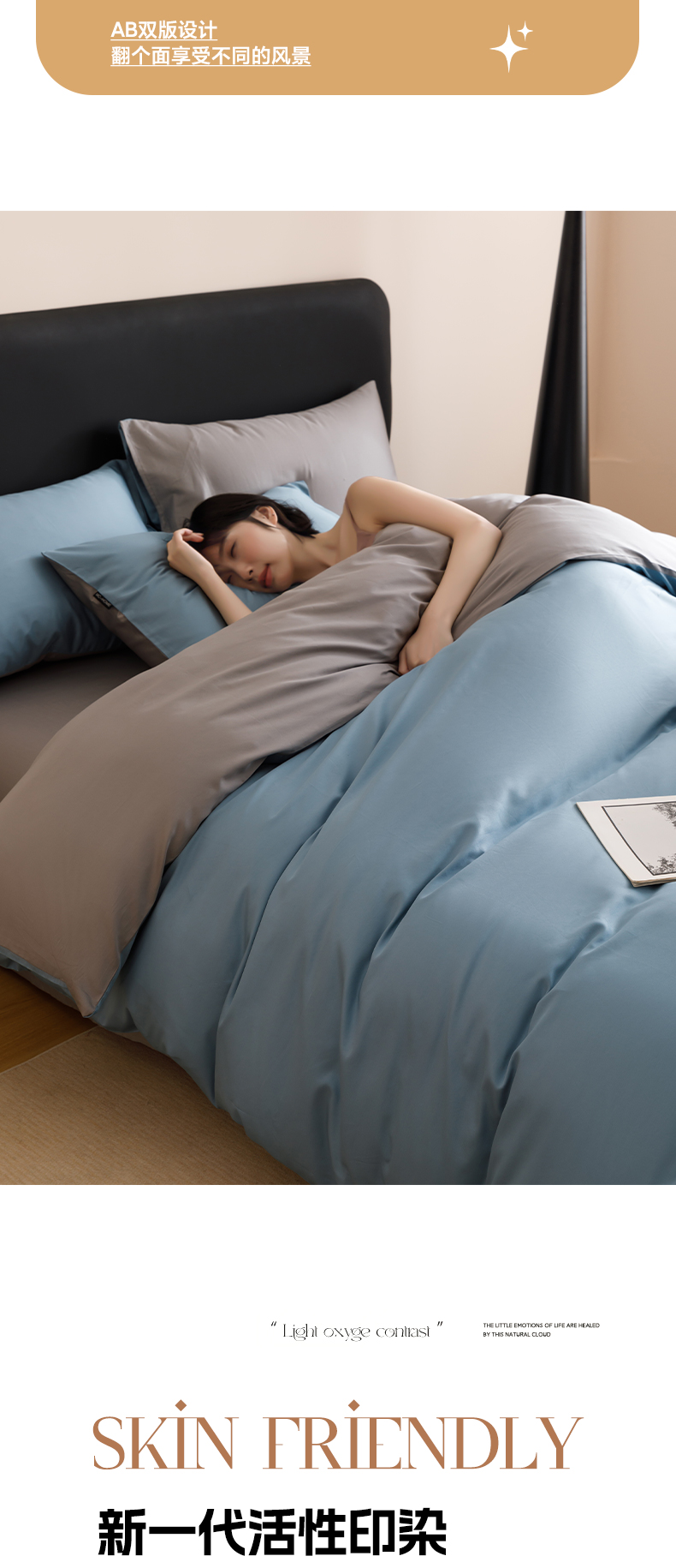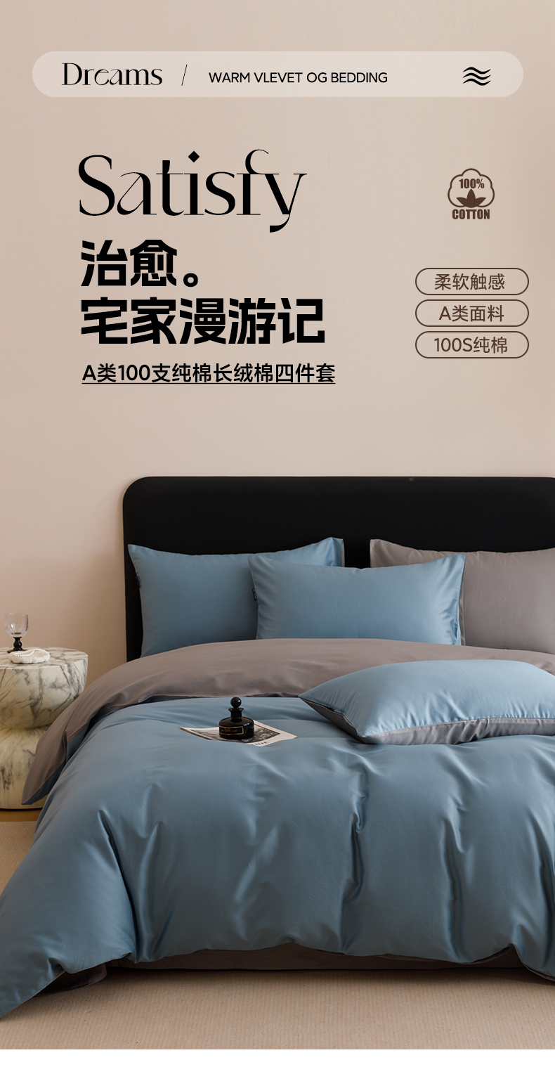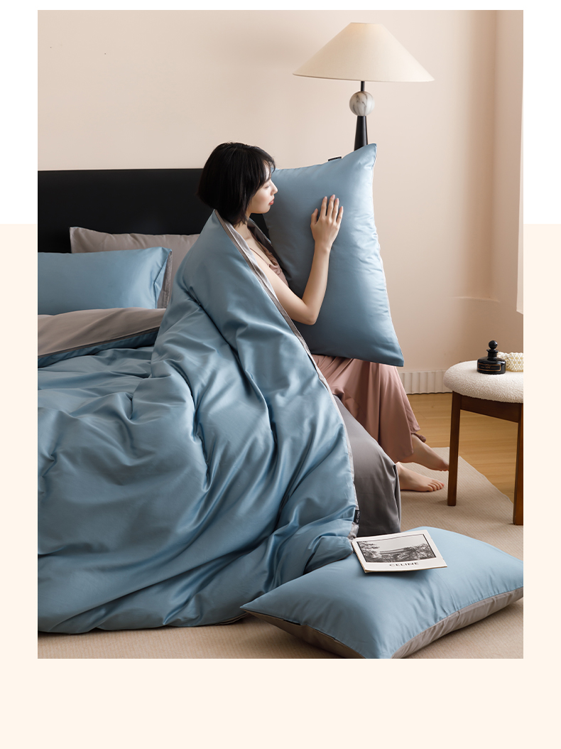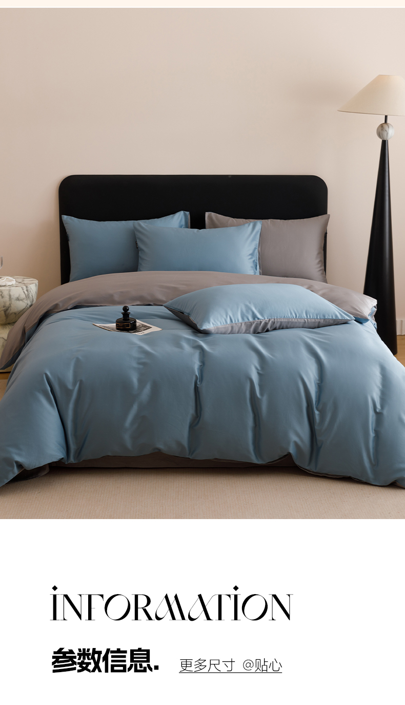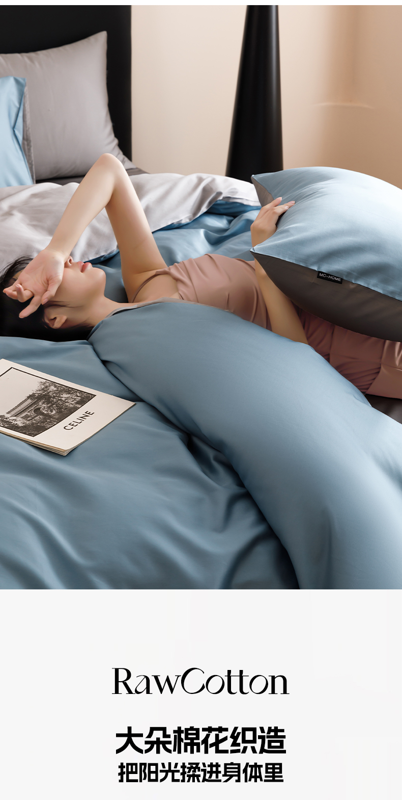 2025新款60支纯棉长绒棉四件套 繁星蓝+暖灰