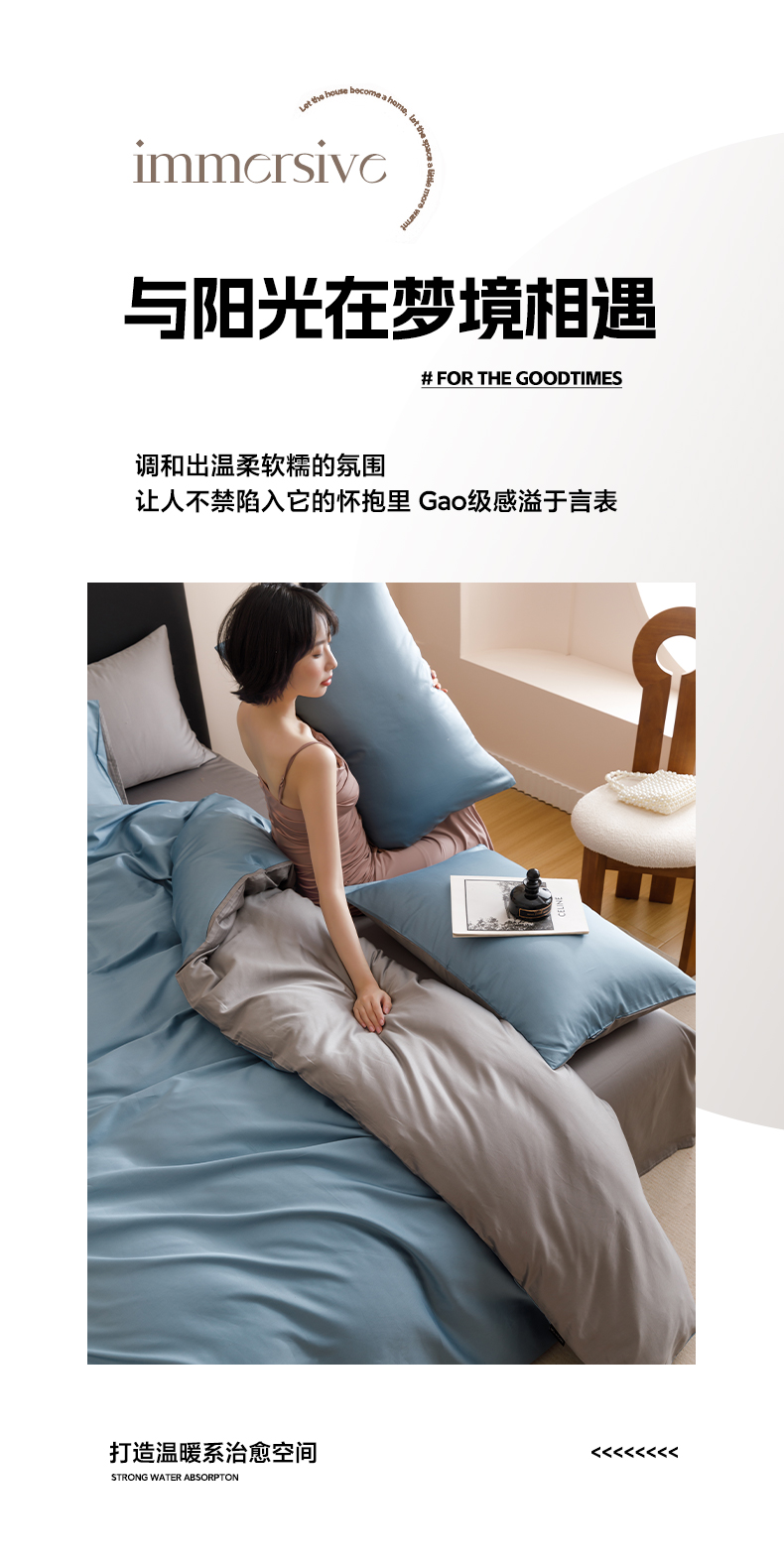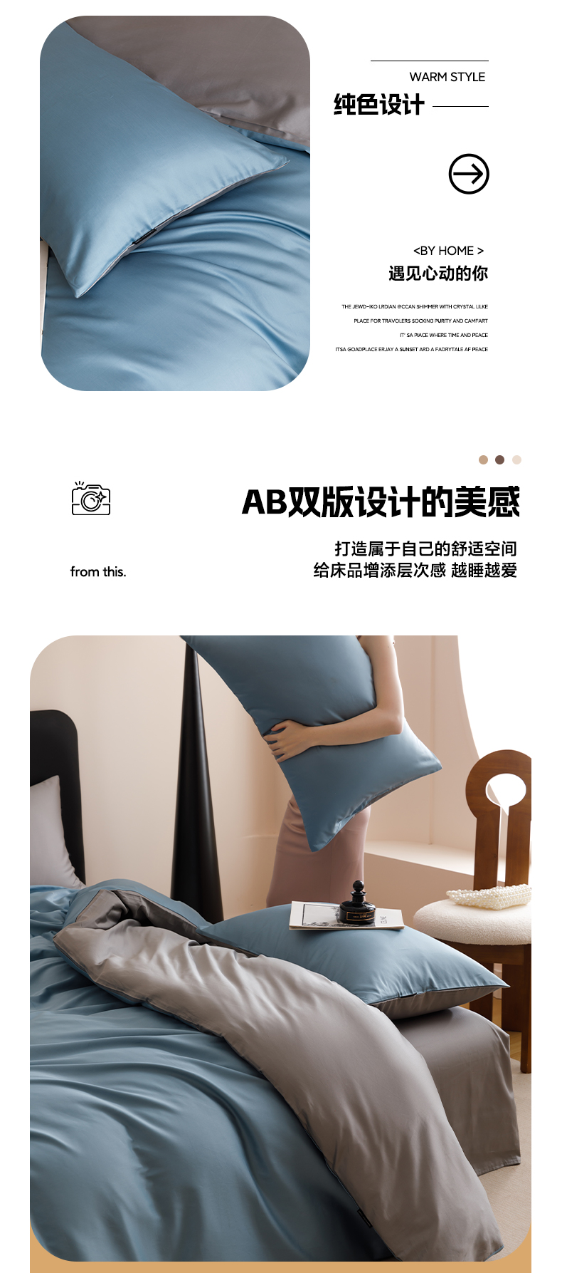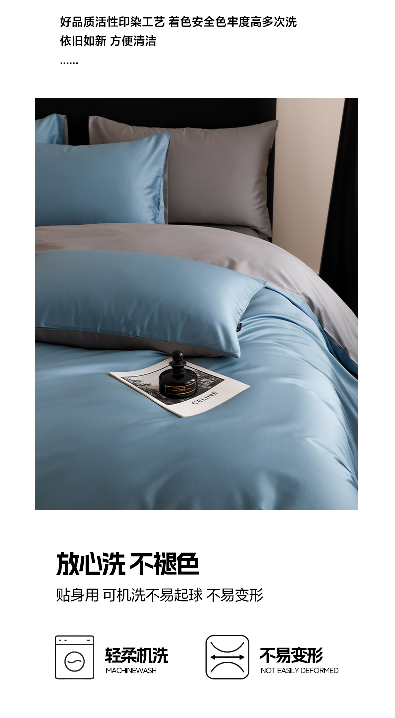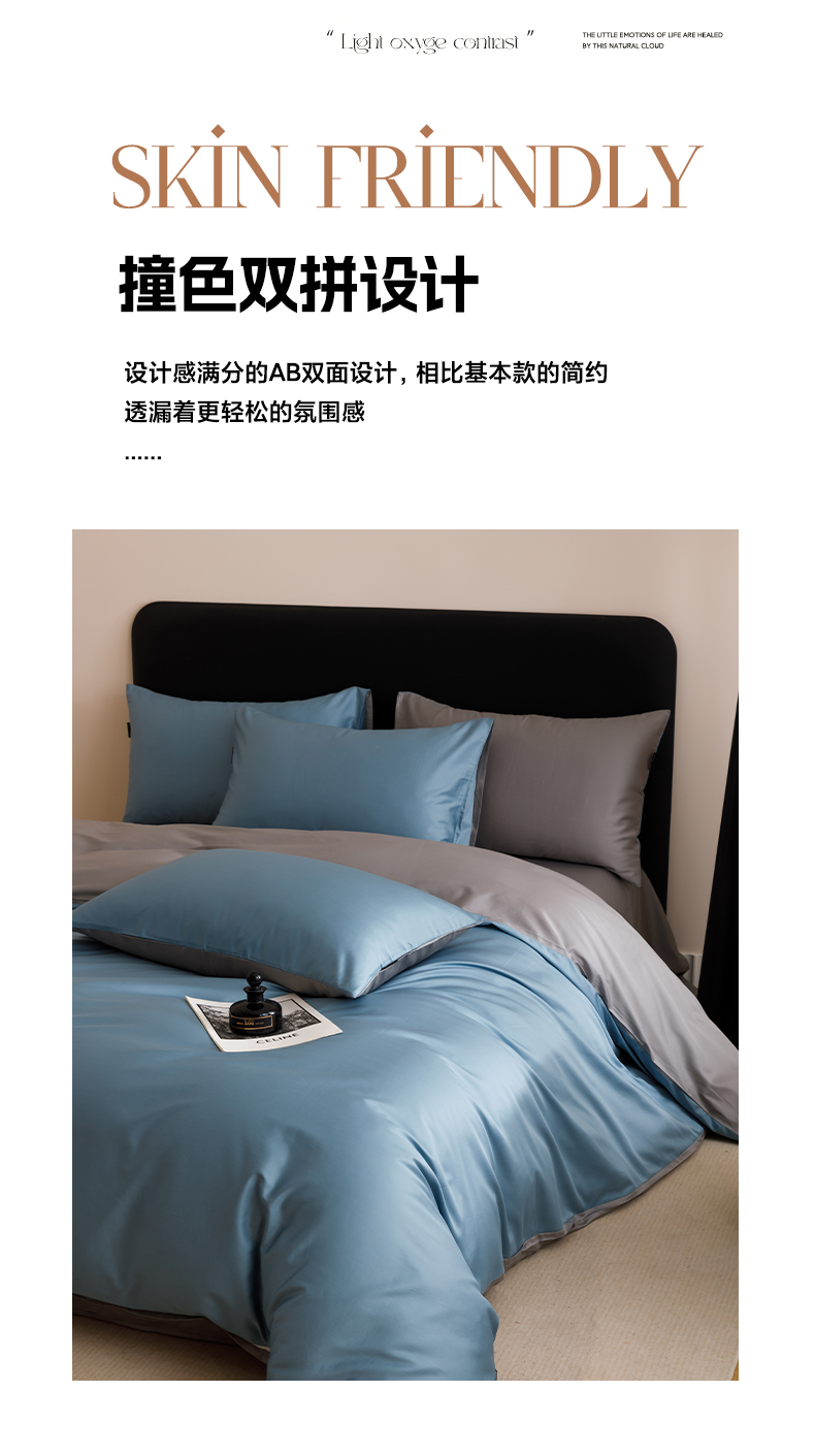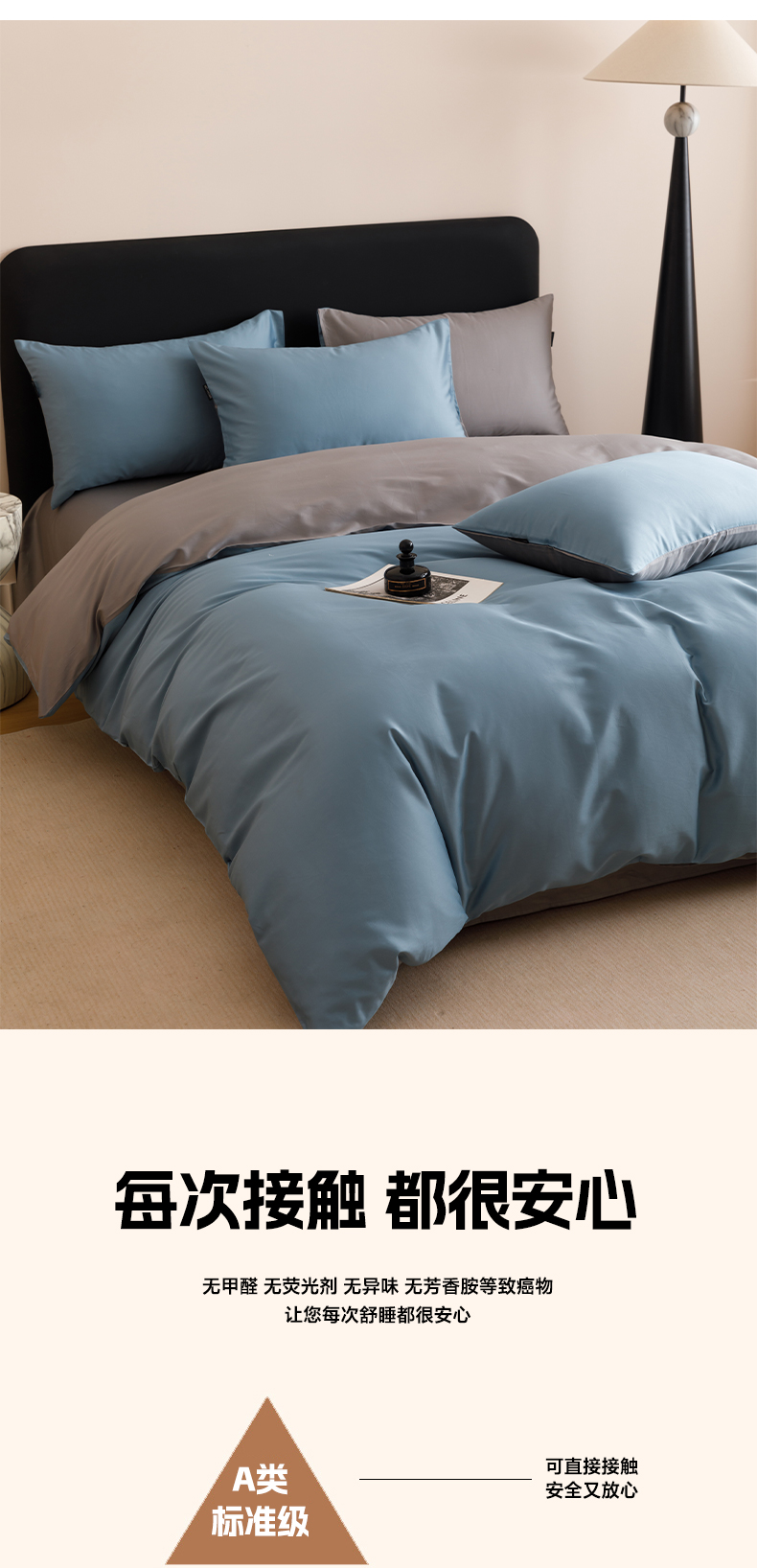 2025新款60支纯棉长绒棉四件套 繁星蓝+暖灰