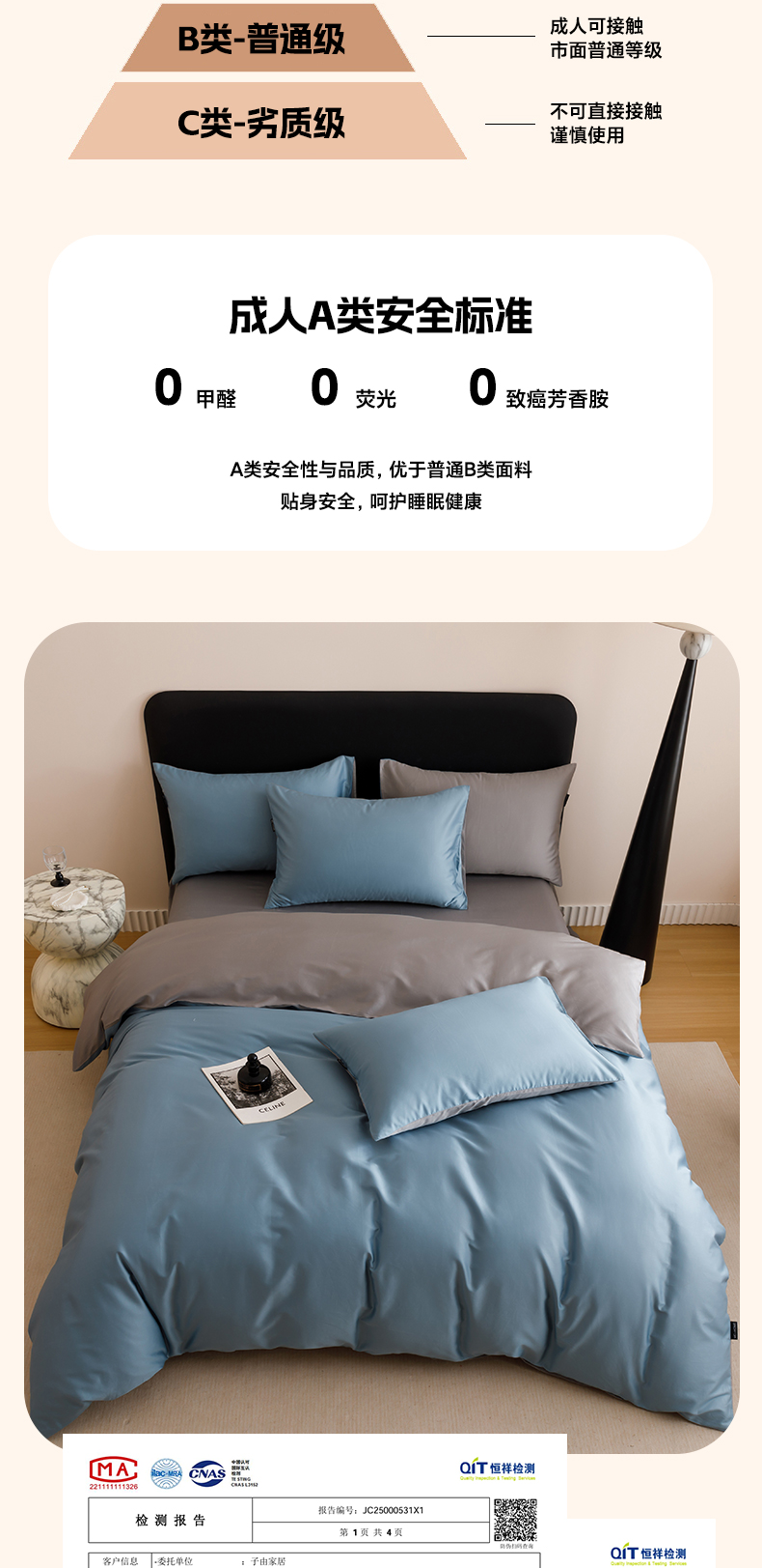 (总)寐绸家纺 2025新款纯棉水洗棉简约双拼大豆纤维夏被四件套,宾利蓝+浅灰,豆沙粉+浅灰,米白+青绿,牛仔蓝+浅灰,浅灰+杏色,天蓝+米黄