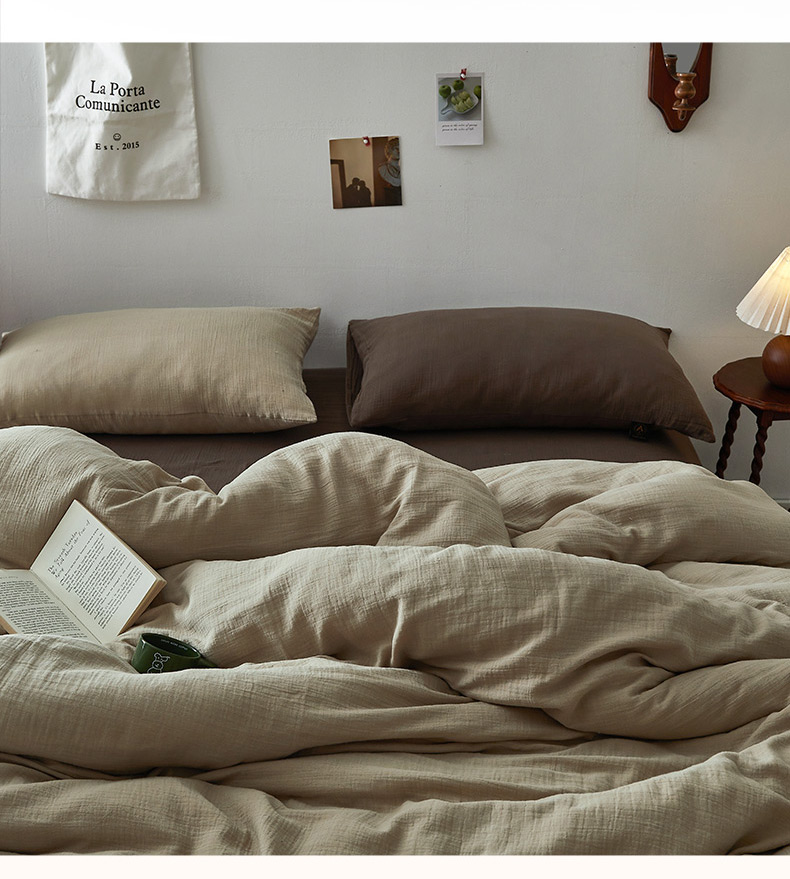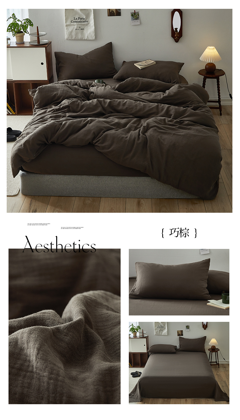 当前位置: 91家纺网 > 商品网购 > 床品套件 > 四件套 > 全棉普通四件套 > 水洗的故事 2025新款全棉A类皱皱纱纯色混搭四件套 米茶