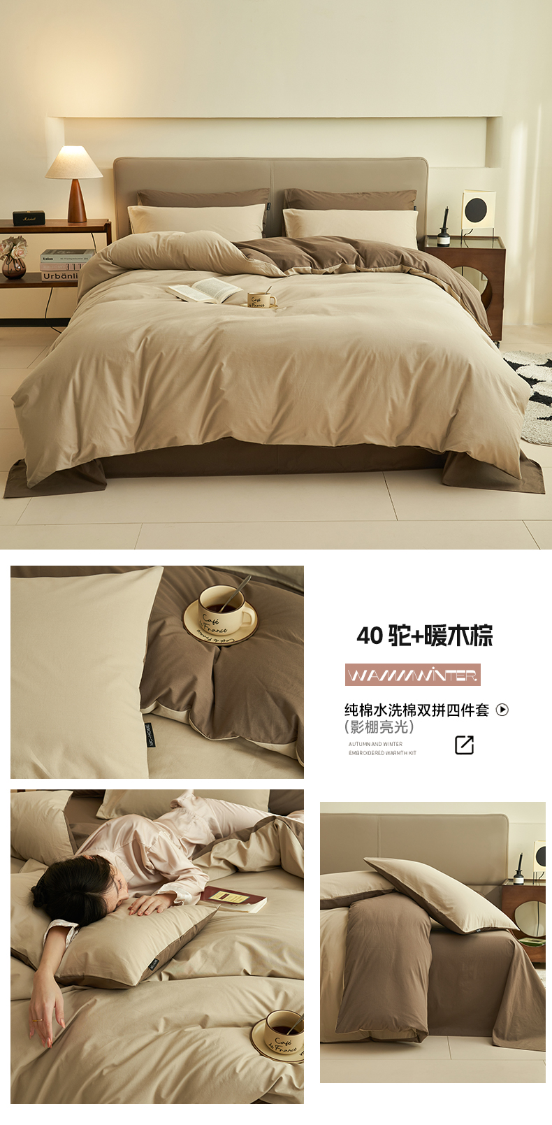 (总)2025新款全棉13372水洗棉双拼四件套(影棚暗光),天青韵白+拾柴,40暖木棕+拾柴,40驼+40暖木棕,安然蓝+毛毯灰,暗木幽香+宝藏灰,暗香紫砂+40驼,布鲁兰+拾柴,春风十里+浮生一梦,豆沙+毛毯灰,扶苏绿+毛毯灰,果绿+墨子绿,礁石灰+毛毯灰,漫雾+古巴砂,毛毯灰+宝藏灰,蘑菇黄+天青韵白,碳烤栗子+拾柴,天蓝+米黄,天青韵白+一念秋风,一叶知秋+袅袅灰,樱木粉+一念秋风